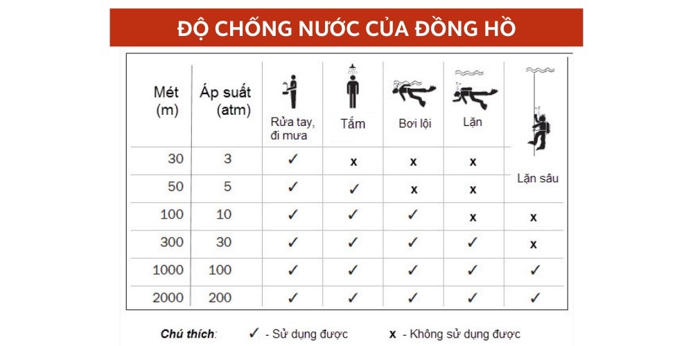 - Khi ở dưới nước, không nên sử dụng các chức năng nút bấm của đồng hồ.