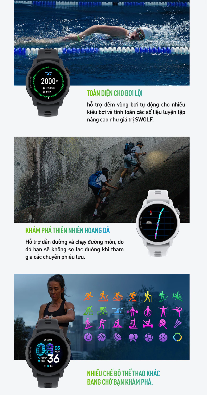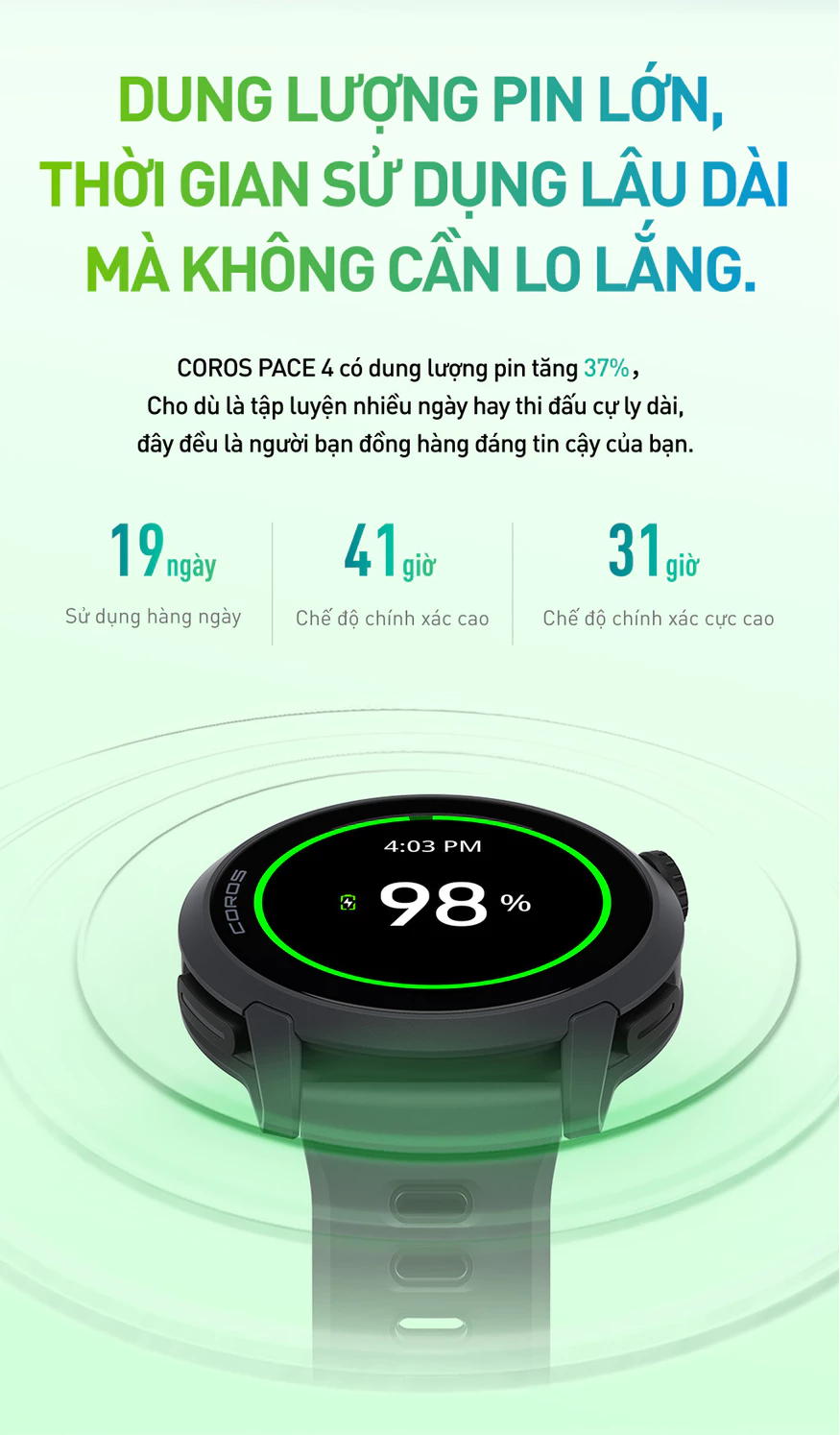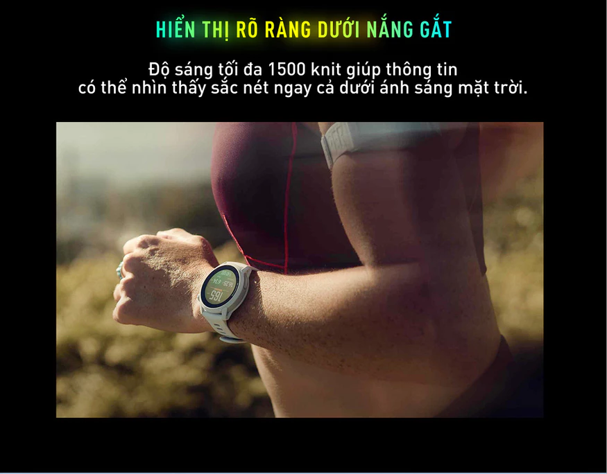 Thời lượng pin ấn tượng: Duy trì hoạt động dài ngày mà không cần sạc thường xuyên – rất hữu ích cho chạy trail, thi đấu hoặc sử dụng hàng ngày.