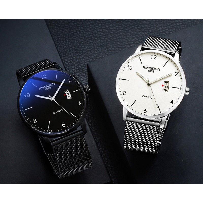 Đồng Hồ Nam Dây Thép Lưới Cao Cấp Kèm Lịch Ngày Hộp Chính Hãng KIMSDUN K-1871B