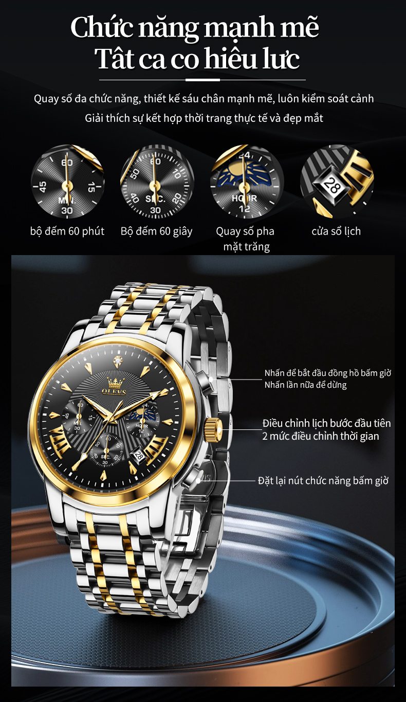Đồng hồ nam OLEVS 2892 chính hãng chống nước dạ quang thời trang với hộp cao cấp