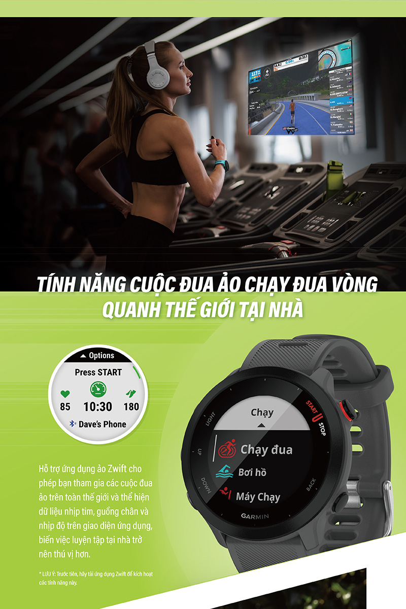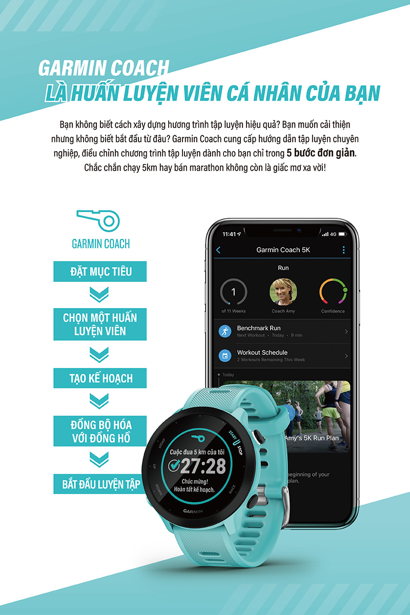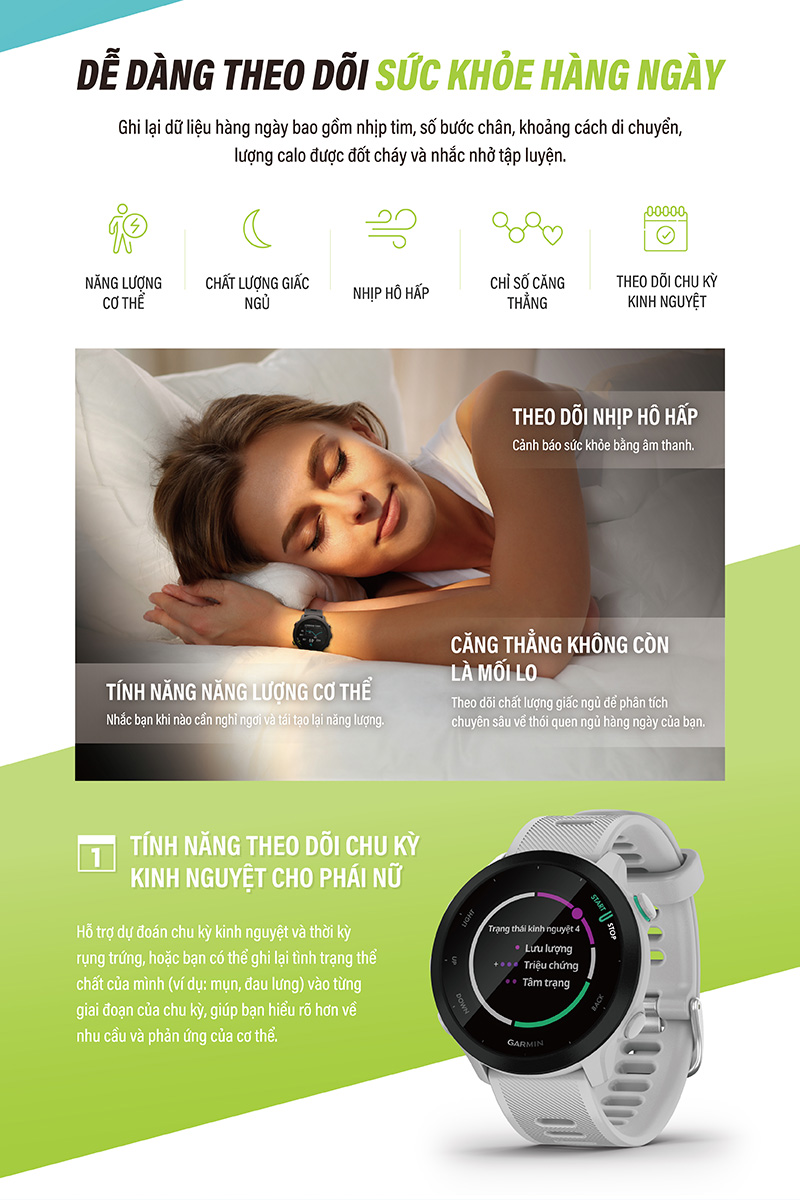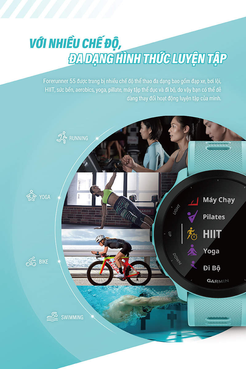 Đồng Hồ Thông Minh Garmin Forerunner 55 GPS (Black/Whitestone/Aqua/Monterra Grey) - Hàng Chính Hãng