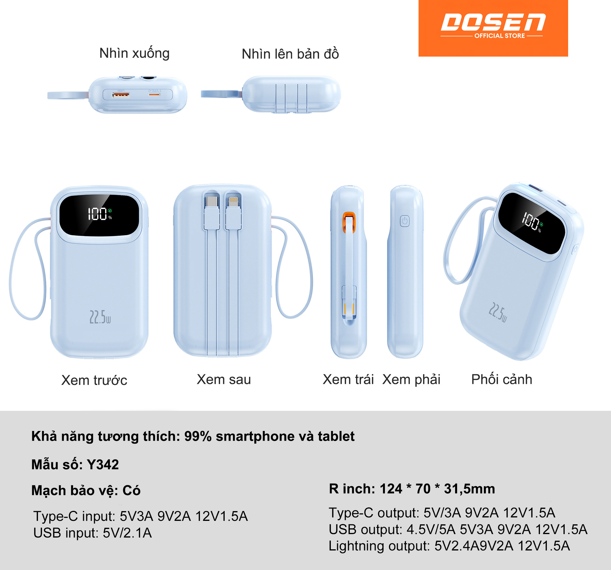 dosen pd22.5w sạc dự phòng power bank tự mang theo dây đôi pin dự phòng màn hình led tích hợp tích hợp 10000mah-42000mah