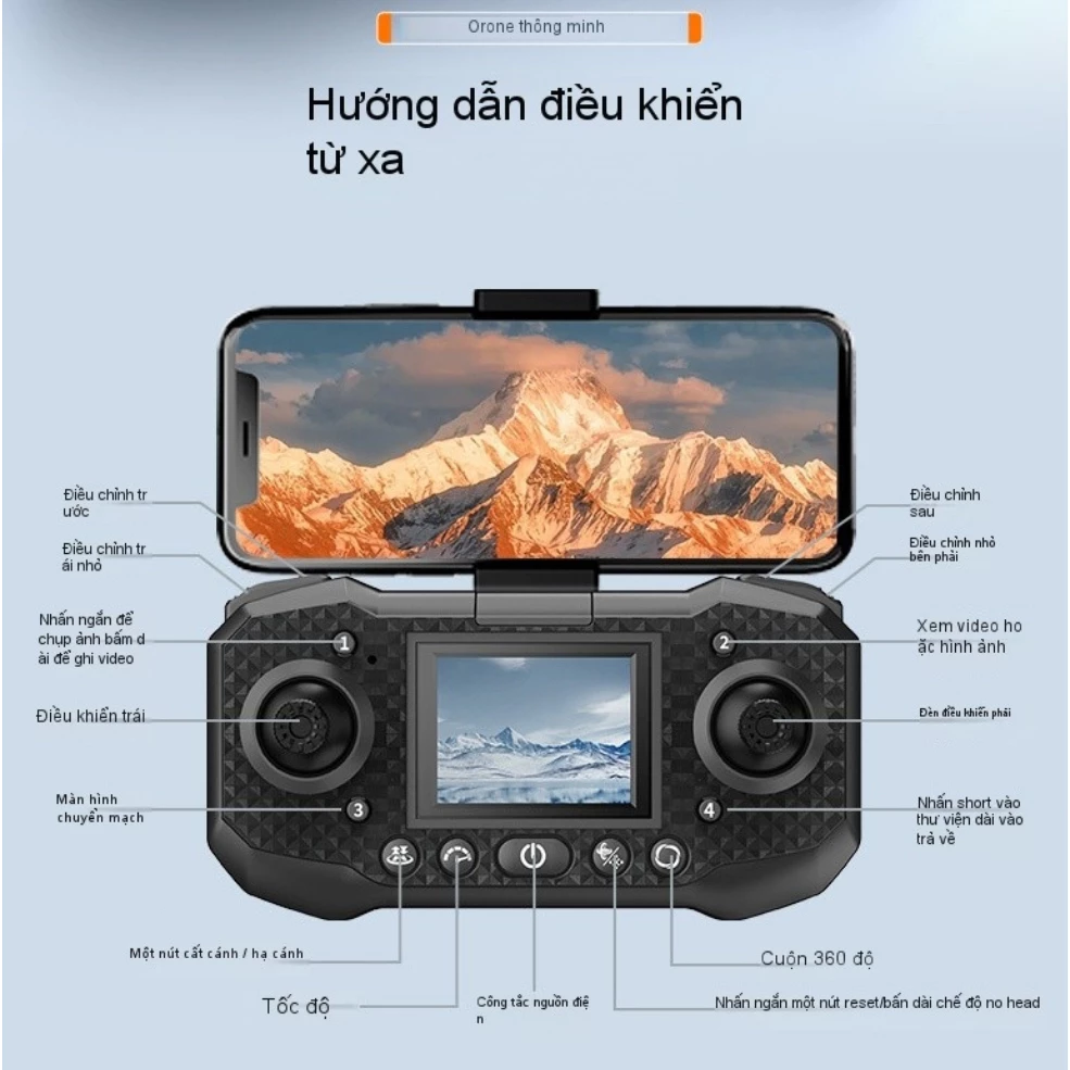 - Cân bằng và ổn định, có nút điều chỉnh trái-phải, trước-sau khi flycam bị bay lệch về 1 phía lệch một phía.