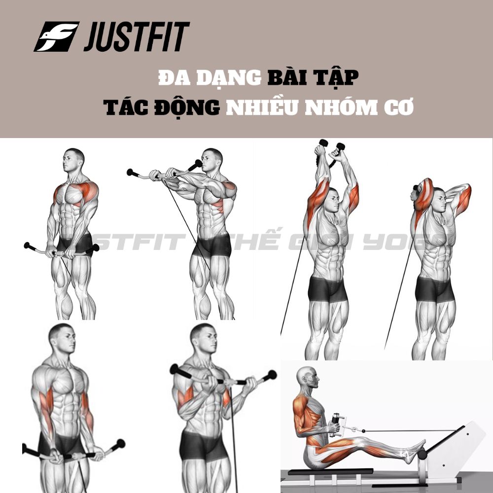 - Trụ tập bụng JUSTFIT giúp bạn thực hiện nhiều bài tập hiệu quả như: