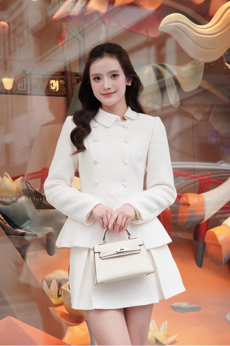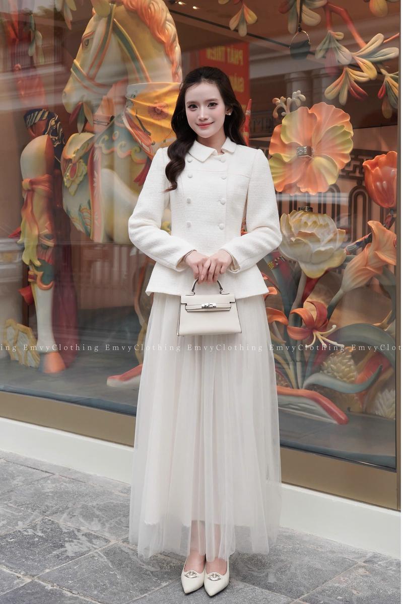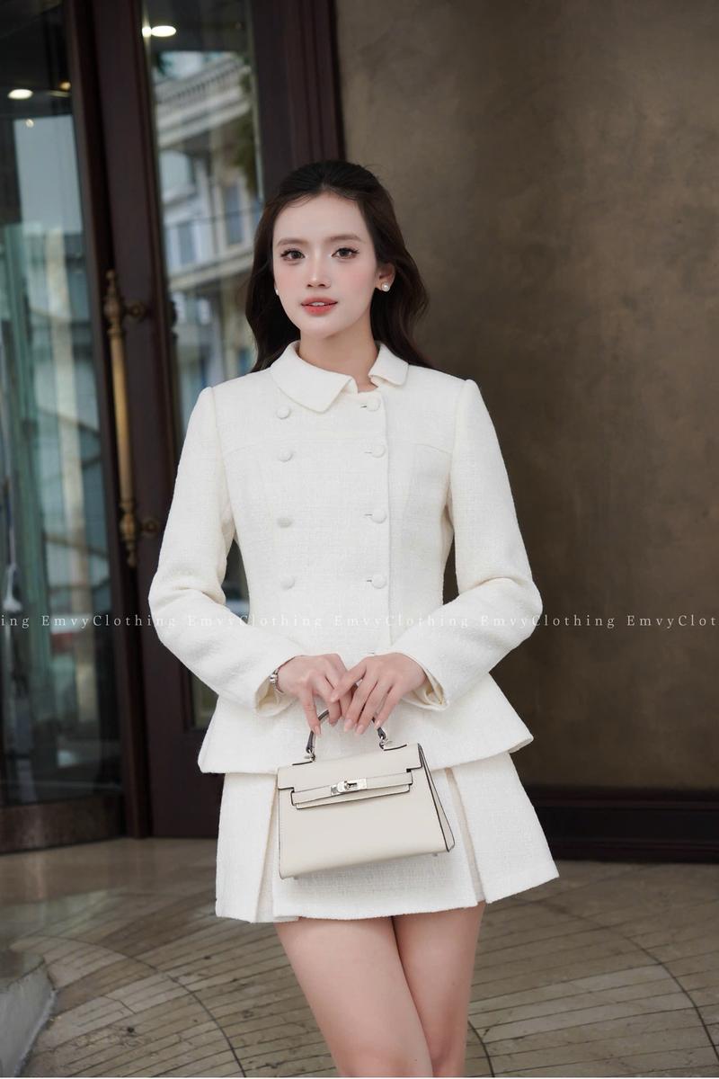 Áo dạ dáng peplum màu kem nhã nhặn, form đứng, tôn eo nhẹ nhàng