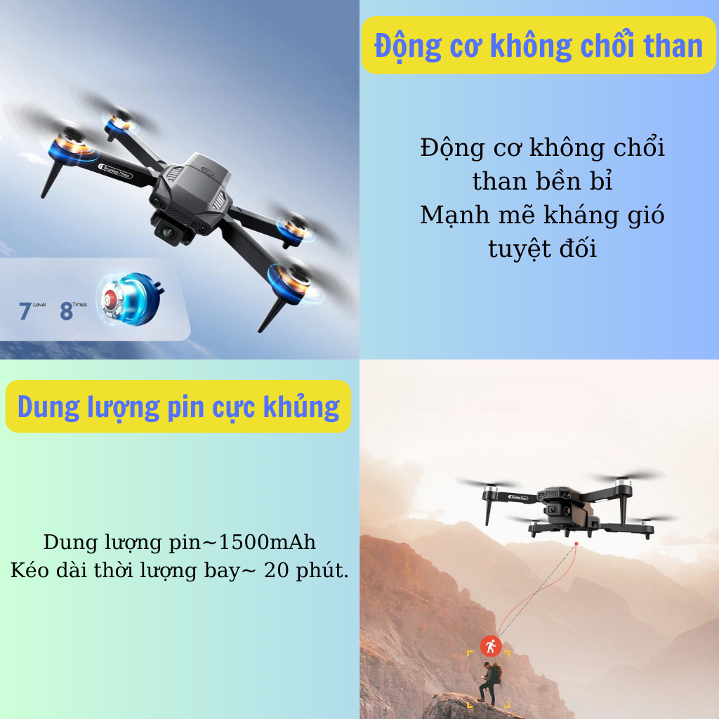 - Pin máy bay không người lái: 3.7V/1800mAh