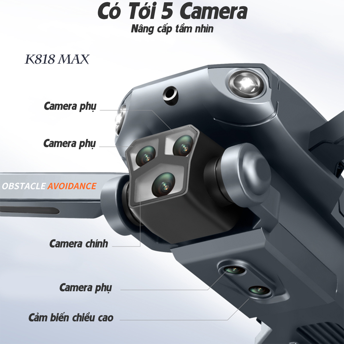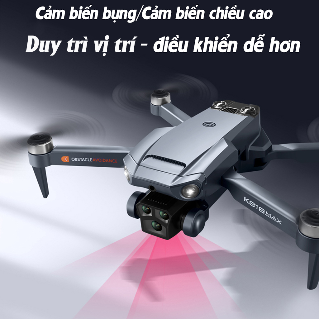 Flycam mini K818 Động cơ không chổi than - 3 Camera quay phim chụp ảnh, Plycam điều khiển từ xa có cảm biến va chạm