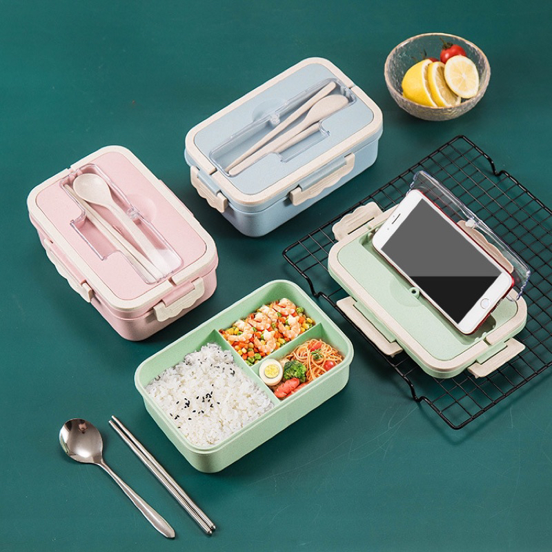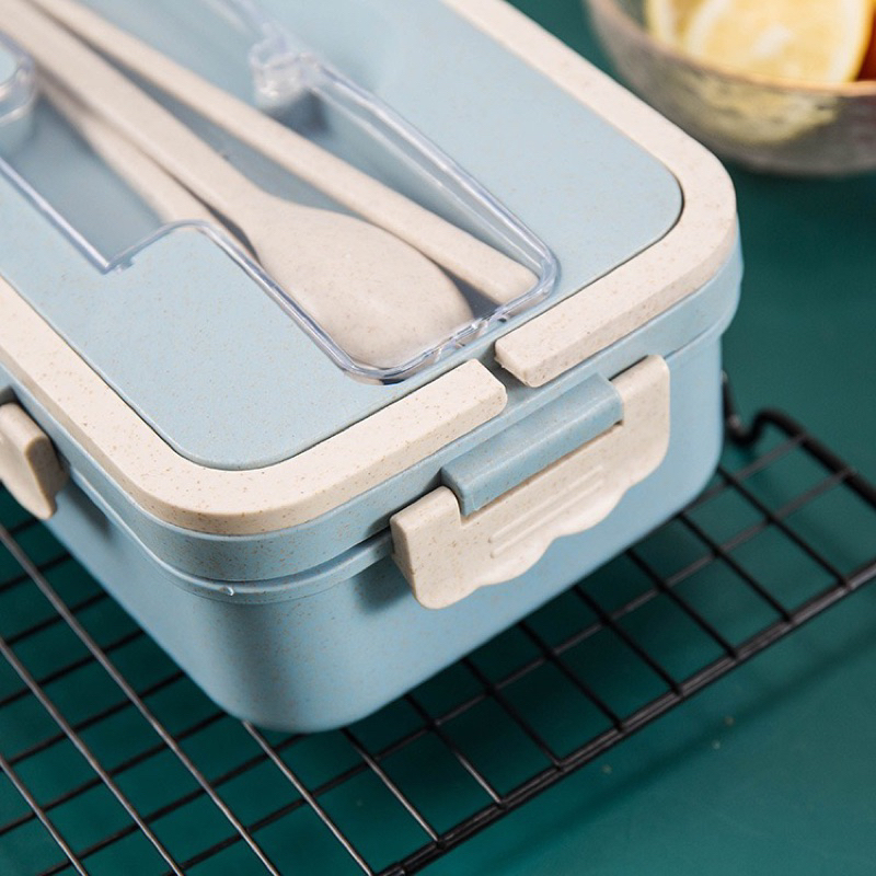 Hộp Đựng Cơm Lúa Mạch 3 Ngăn Kèm Bộ Đũa Thìa Lúa Mạch