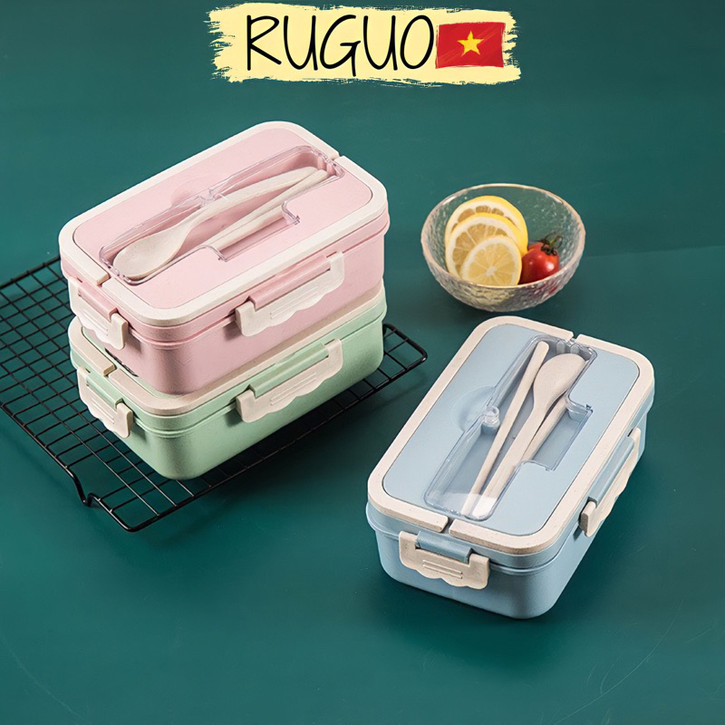 [FreeShip – Clip thật] Hộp Đựng Cơm Lúa Mạch 3 Ngăn Kèm Bộ Đũa Thìa Lúa Mạch