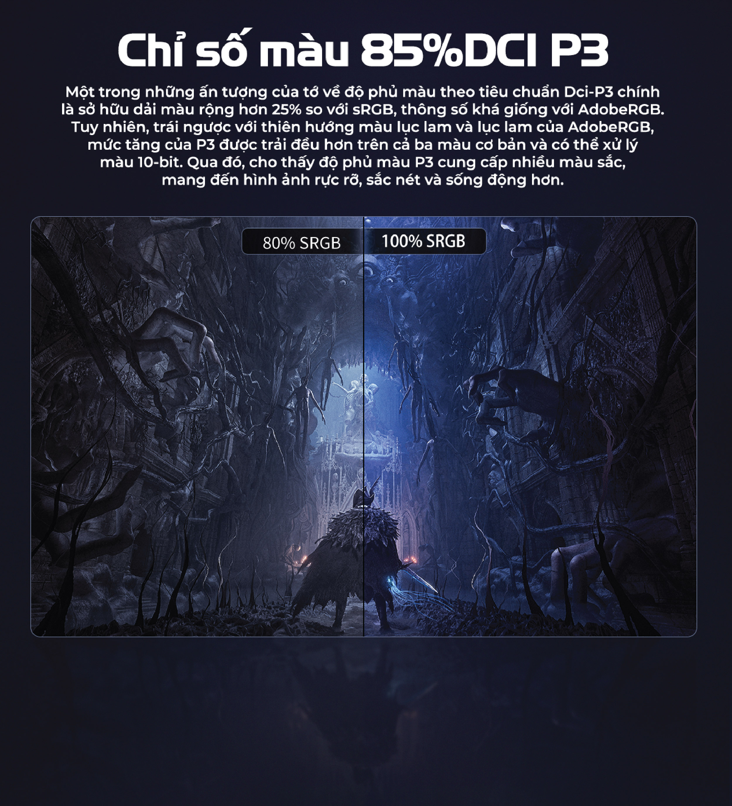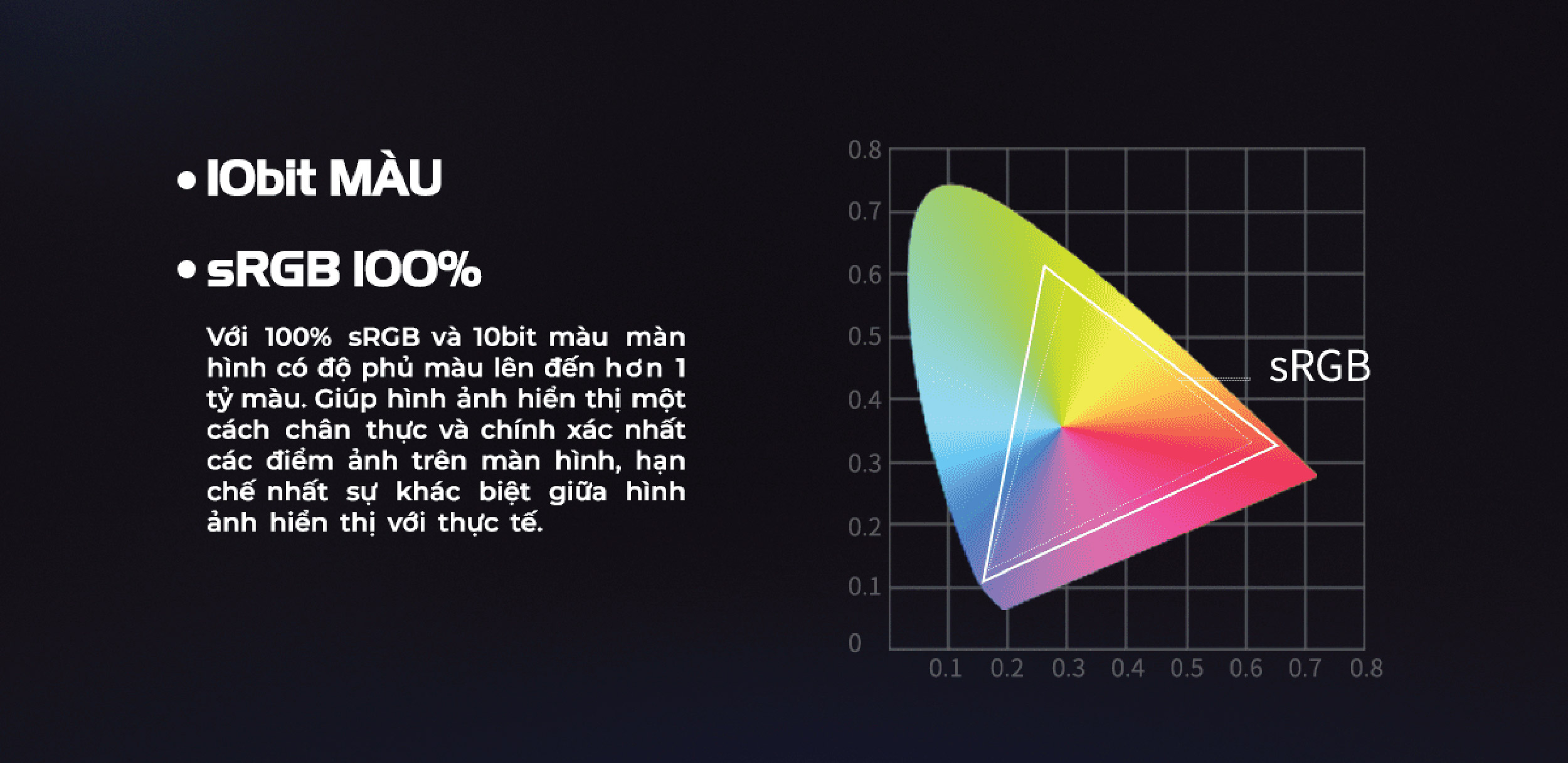 • Màu sắc hiển thị: 10bit (8 + 2frc)