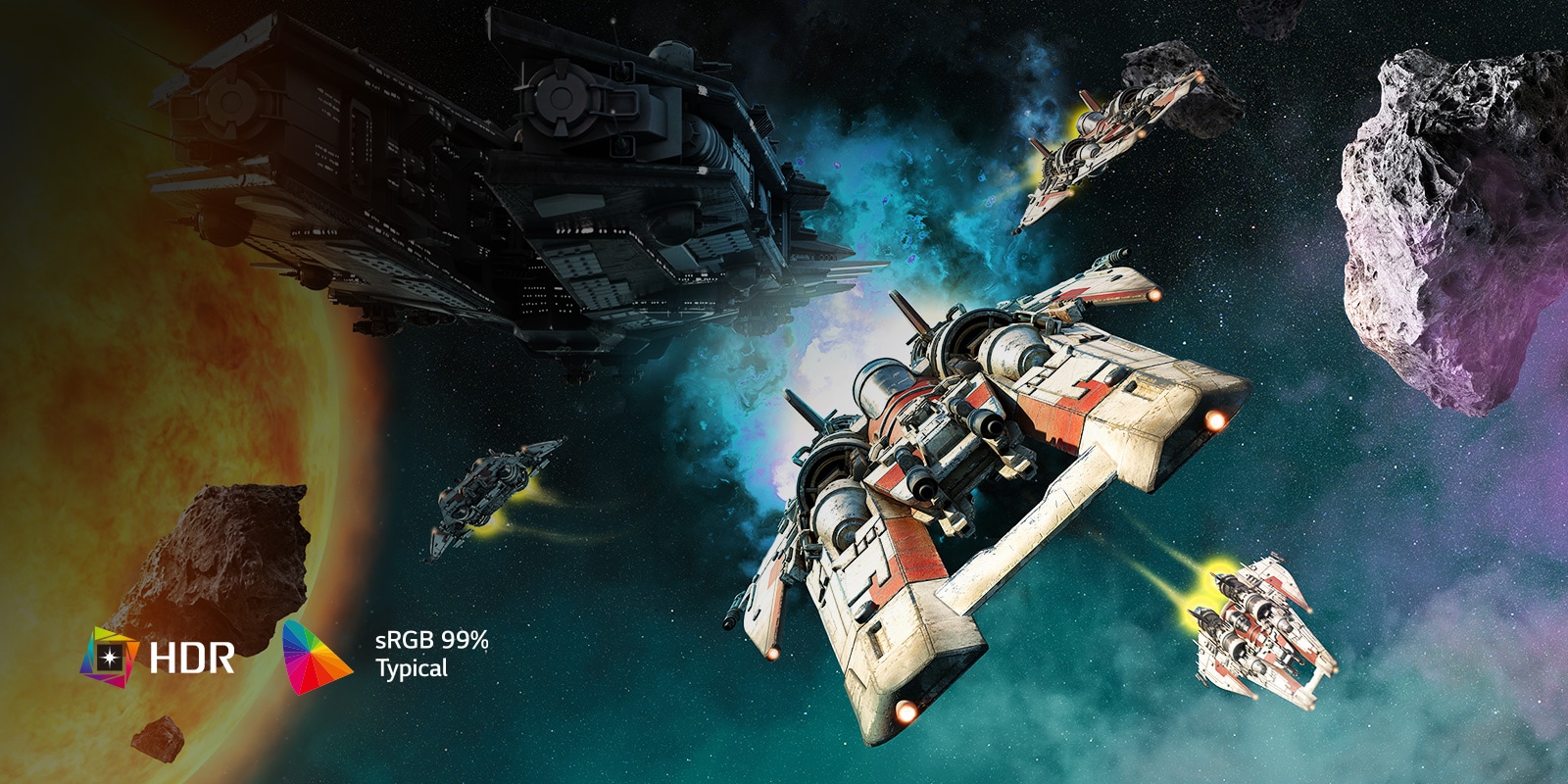 Hỗ trợ HDR10 và độ bao phủ sRGB 99% (Typ.), màn hình UltraGear™ mang đến màu sắc chính xác và sống động. Điều này giúp game thủ tận hưởng thế giới game với hình ảnh chân thực và chi tiết hơn.