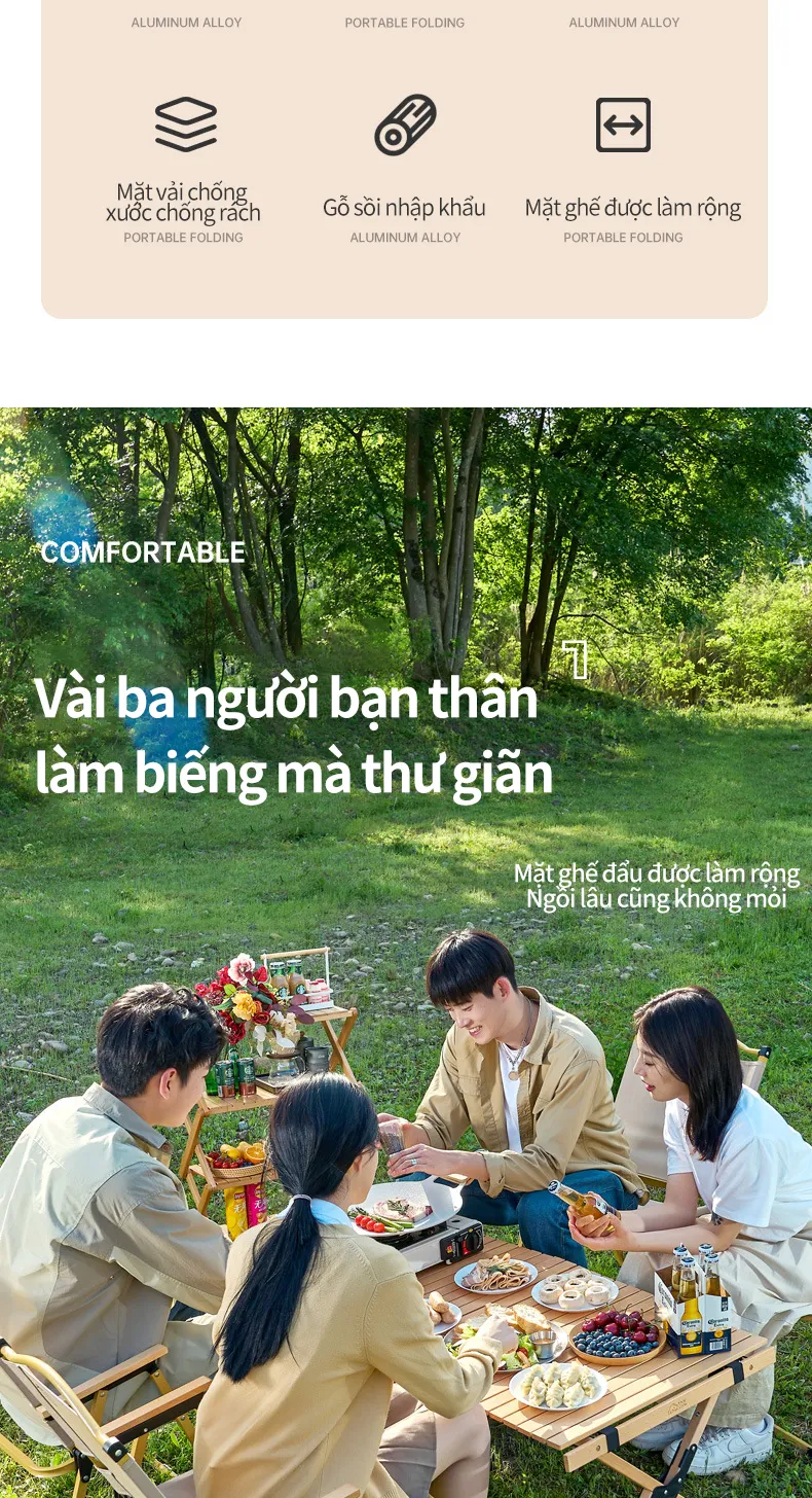 - Ghế xếp dã ngoại có thể gấp gọn, dễ dàng mang đi. Thiết kế của ghế sang trọng, đẹp mắt