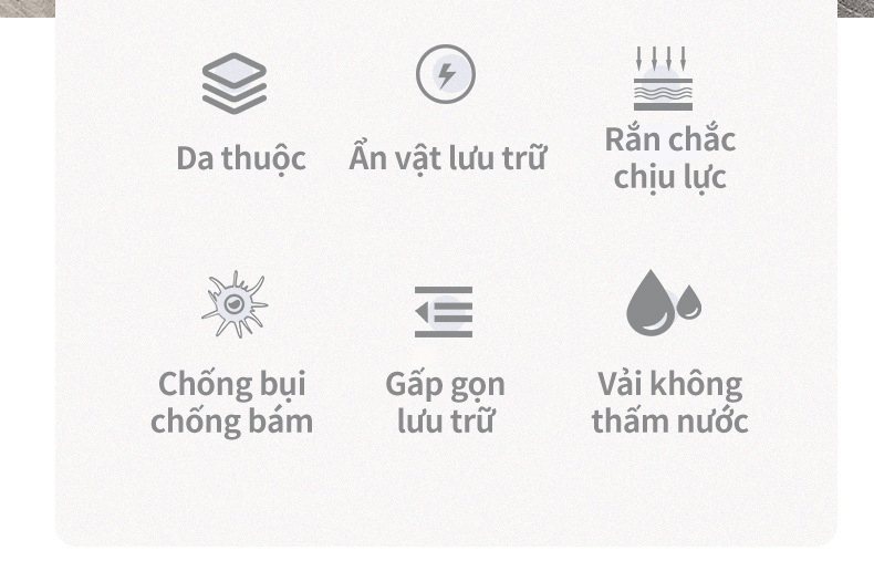 Chiếc ghế hình hộp chữ nhật hoặc vuông , Bọc da PU thiết kế bấm cúc vô cùng sang trọng Chống Thấm chất lượng cao, bền, chắc, không bám bụi và thân thiện với môi trường, an toàn cho trẻ nhỏ.