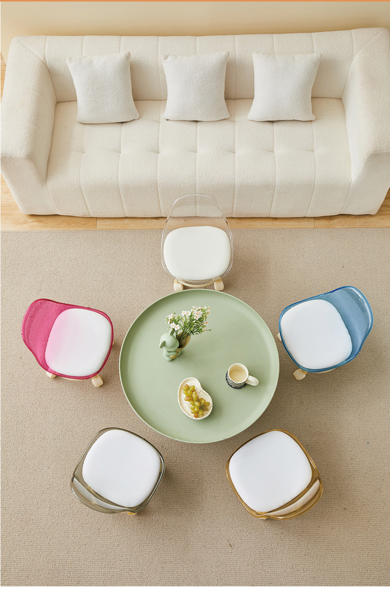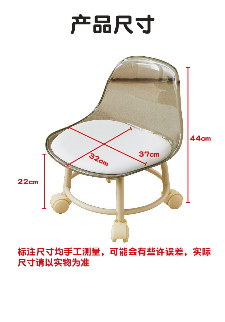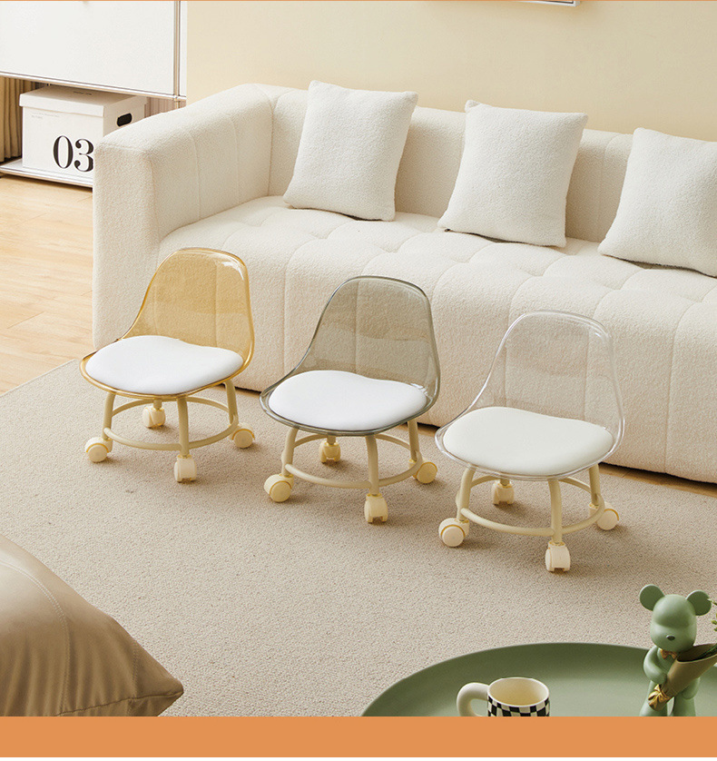 Ghế Ngồi Nhỏ Chất Liệu acrylic Có Bánh Xe Không Ồn xoay 360 độ, Ghế đẩu nhỏ cao cấp tựa lưng trong suốt Cho Trẻ Em