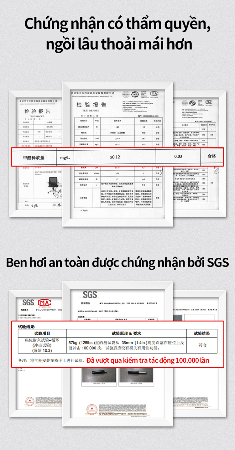 - Ben hơi an toàn được chứng nhận bởi SGS