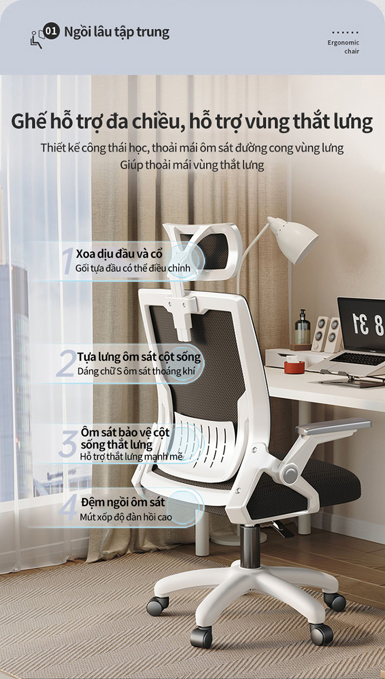 - Ghế máy tính công thái học, nâng đỡ êm ái giảm áp lực