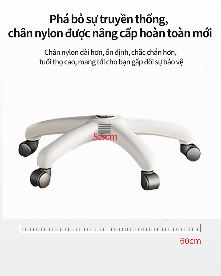 - Nâng cấp hoàn toàn mới với tựa ghế nylon cao hơn