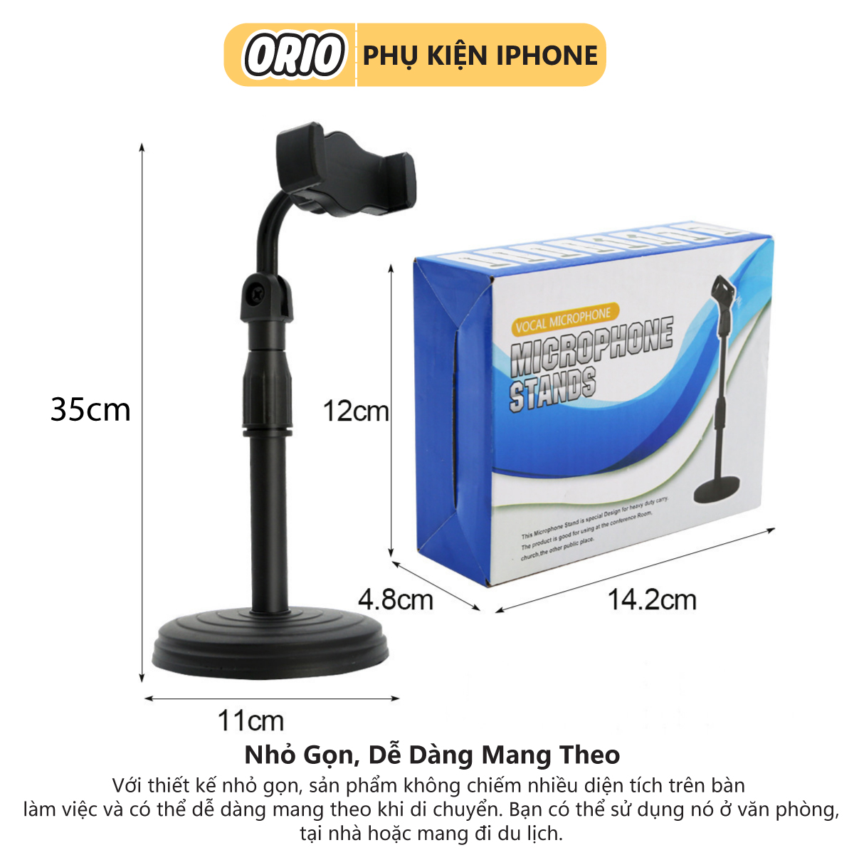 Giá đỡ điện thoại để bàn ORIO B11 xoay 360 độ để quay phim đa dụng - kẹp Livestream