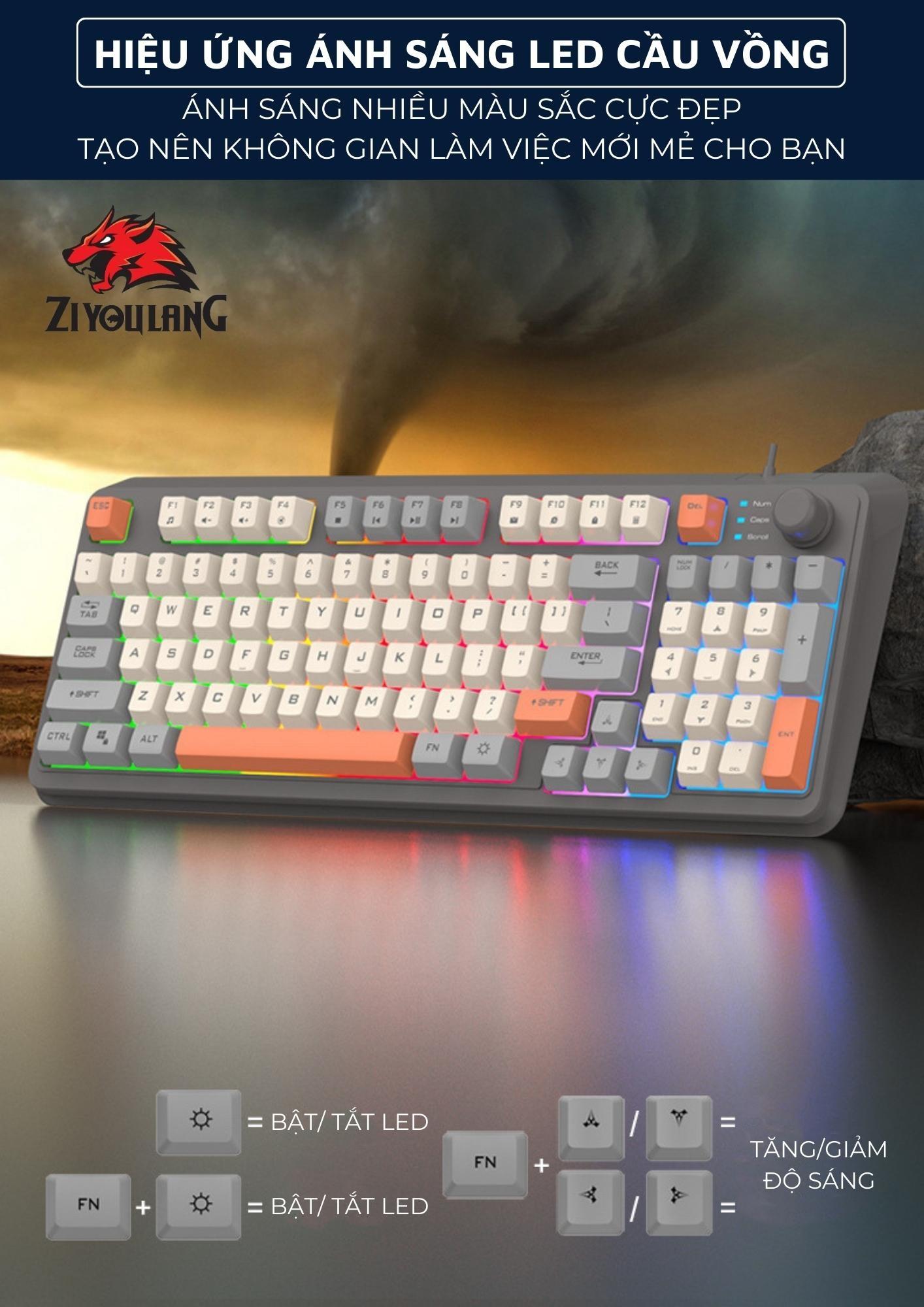 - Bàn phím giả cơ với keycap PBT cùng với cấu trúc giả cơ chỉ có tại Ziyou khiến bàn phím gõ cực kỳ êm và gần như không phát ra tiếng