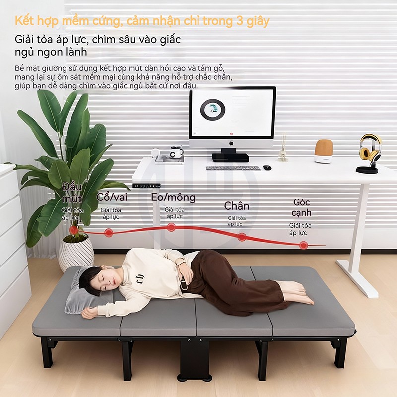 - Hỗ trợ: ngồi hoặc nằm trong mọi không gian, thích hợp cho dân công sở nghỉ trưa và người thân đi thăm nuôi bệnh nhân. Sau khi sử dụng hãy gấp gọn để gầm bàn làm việc.