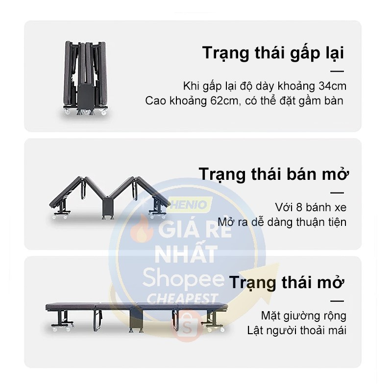 🛏️ Thiết kế thông minh 4 khúc, dễ dàng gấp gọn – mở ra trong vài giây, không cần lắp ráp. Phù hợp cho dân văn phòng, người chăm sóc bệnh nhân hoặc dùng tại nhà, cắm trại.