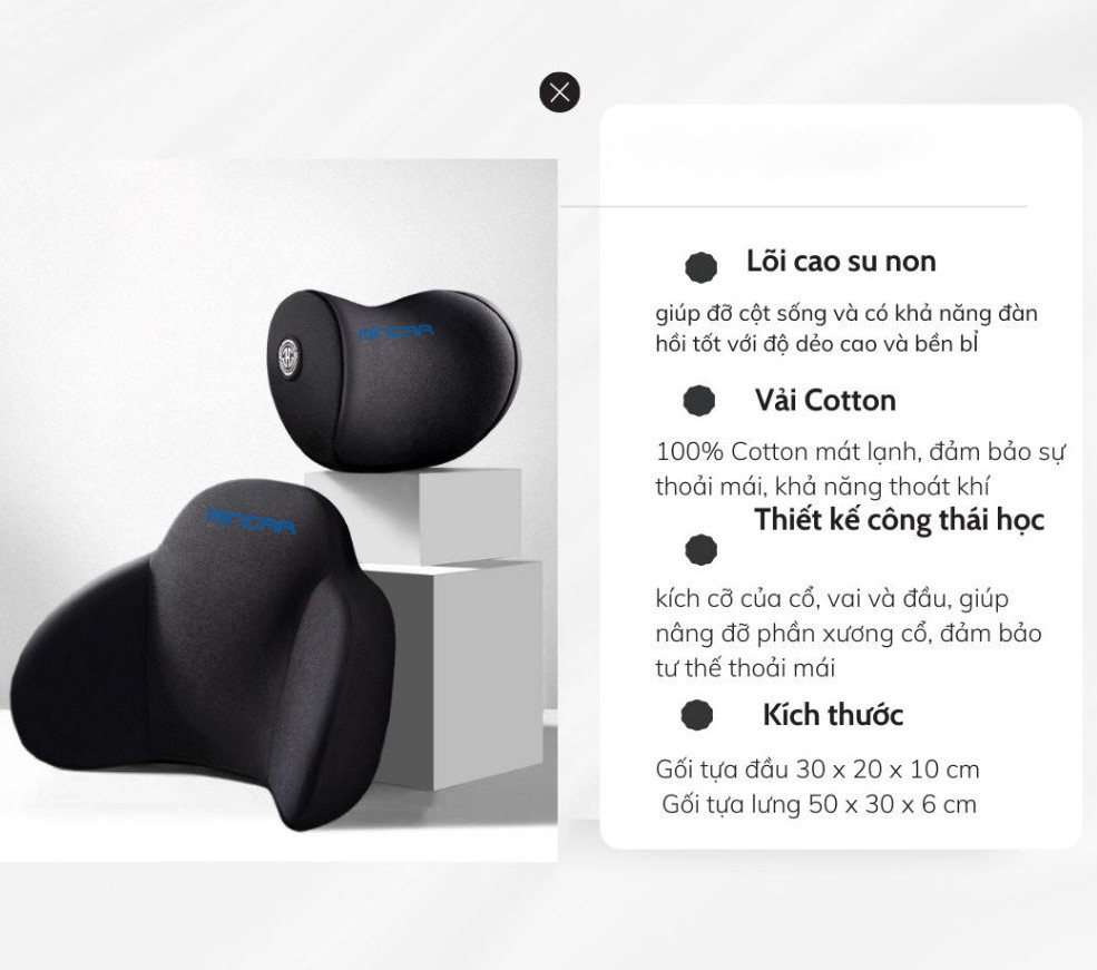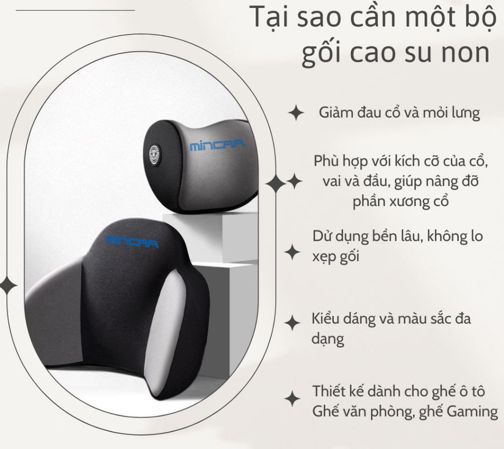 Bộ Tựa Lưng + Gối Đầu làm 100% từ CAO SU Non mềm mại, mát lạnh không gây Nóng sẻ giúp bạn tập trung lái xe an toàn.