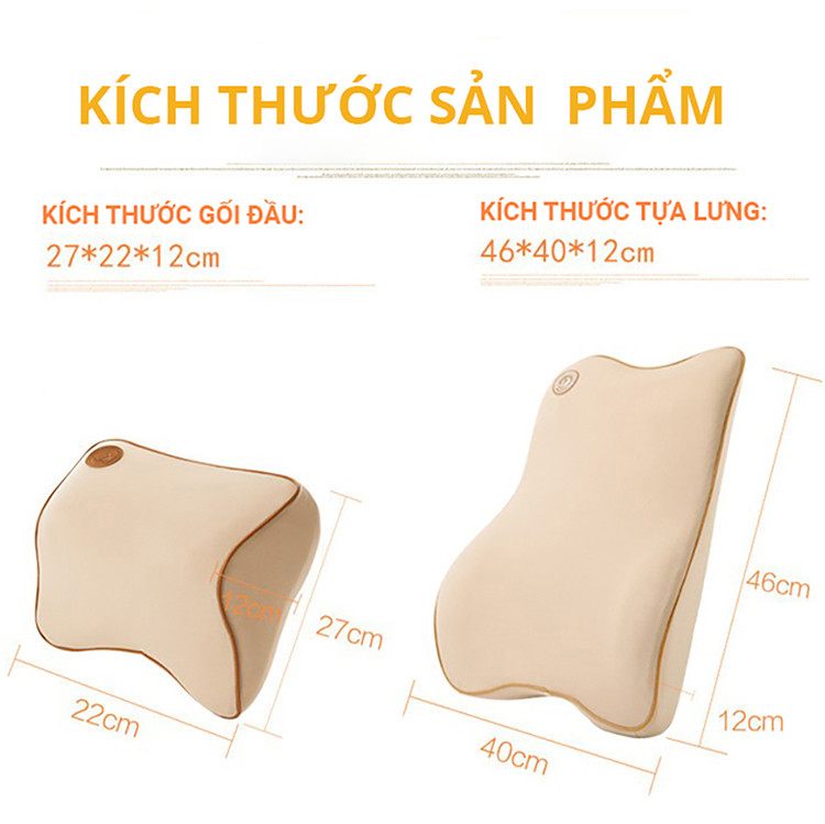 -Đệm tựa lưng và gối tựa đầu sản xuất với kích thước tiêu chuẩn phù hợp với dáng người Á Đông.