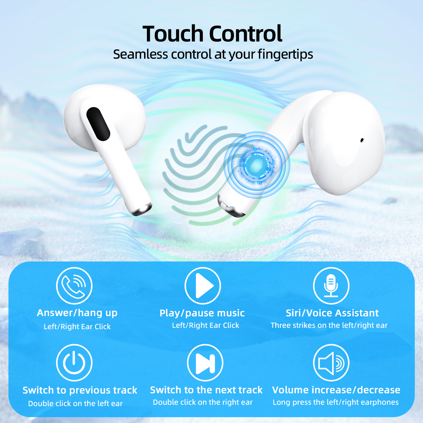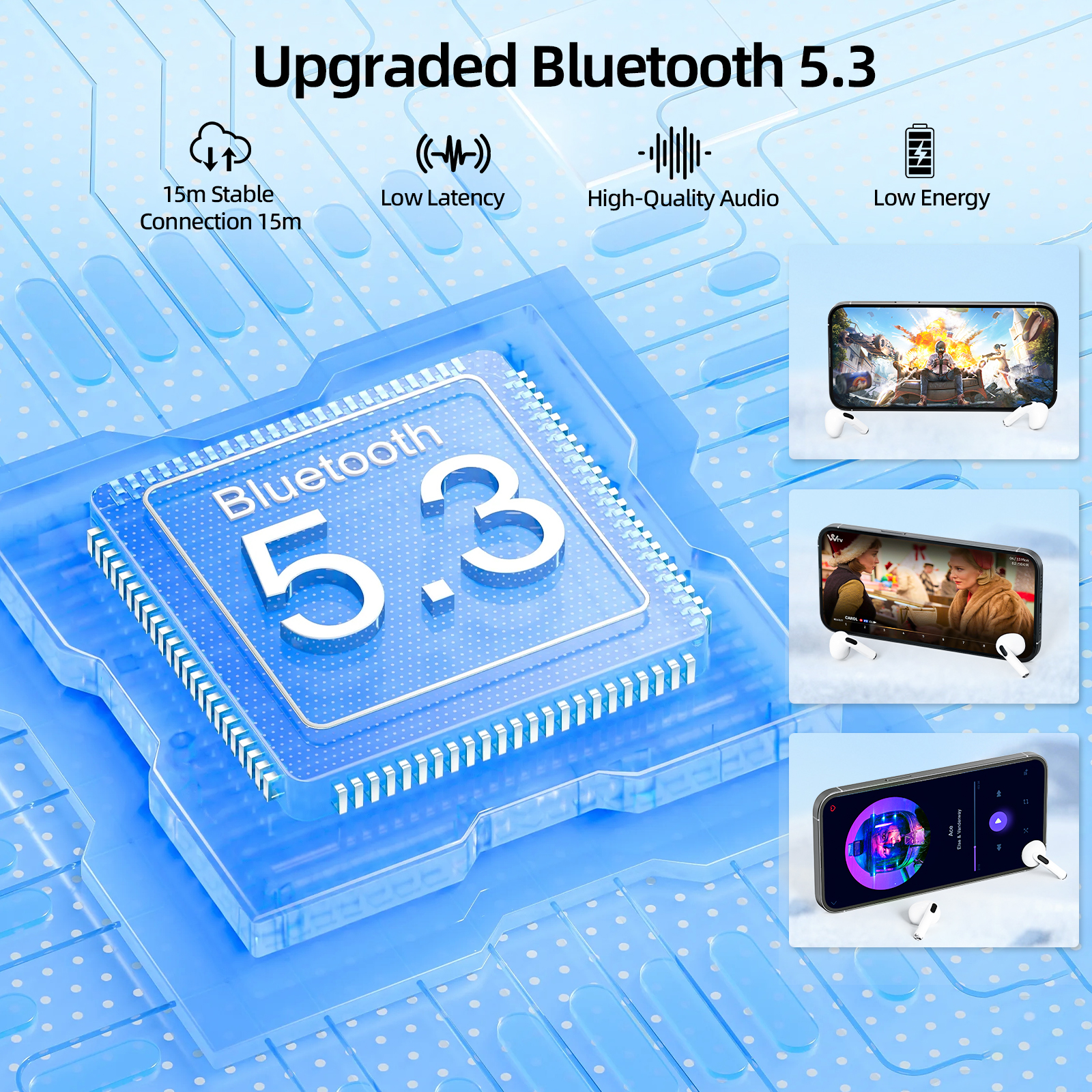 Tai nghe Bluetooth không dây: Sử dụng chip Bluetooth 5.3 được nâng cấp, có kết nối ổn định hơn, khoảng cách kết nối hiệu quả dài hơn là 15 mét, tốc độ truyền nhanh hơn và tiêu thụ năng lượng thấp hơn, giúp trải nghiệm âm thanh của bạn hiệu quả hơn Và đáng tin cậy. Tai nghe cũng hỗ trợ điều khiển cảm ứng, thuận tiện cho việc thao tác.