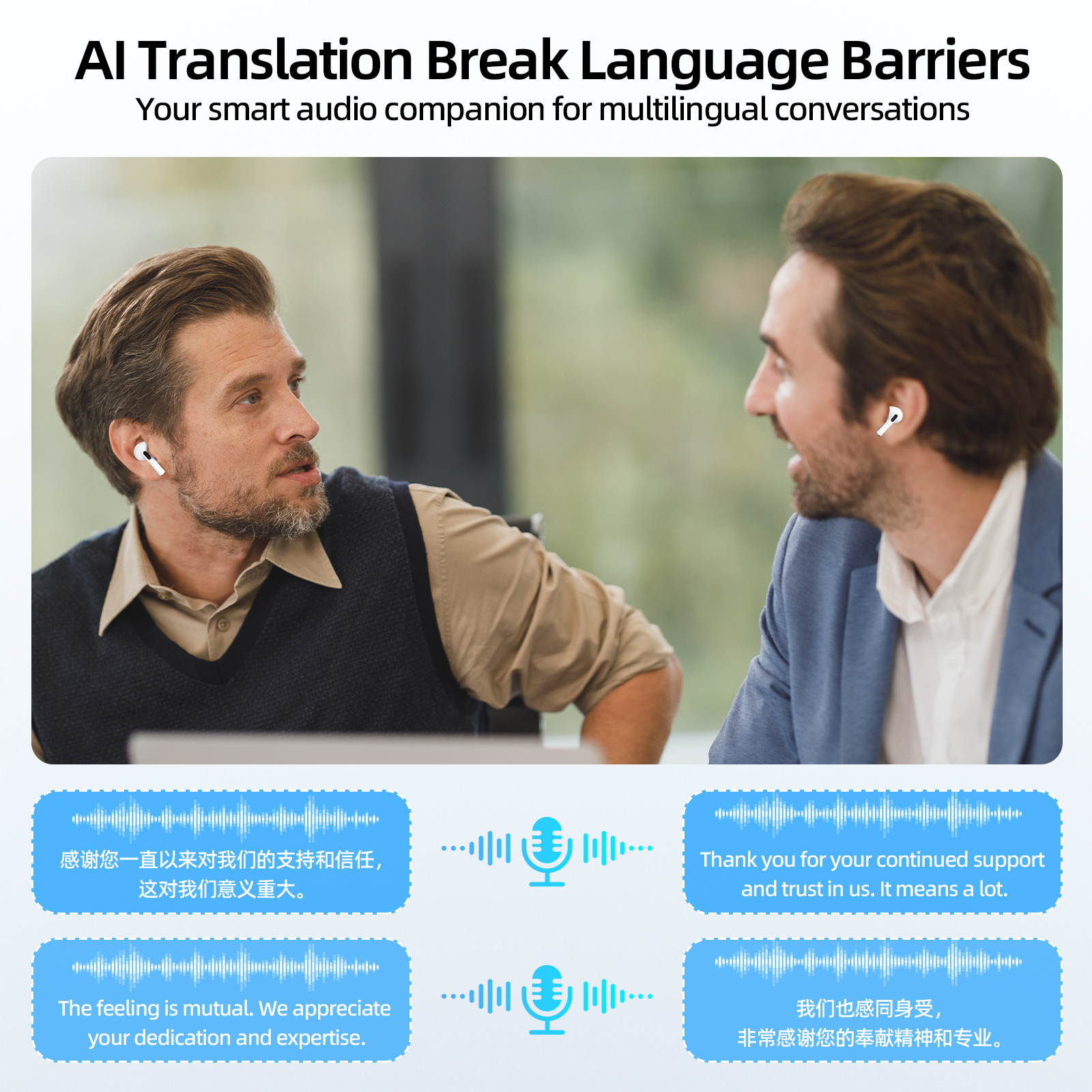 GOOJODOQ Tai nghe Bluetooth không dây TWS 5.3 Dịch thuật AI tiên tiến nhỏ gọn & Hỗ trợ di động 36 ngôn ngữ Dịch - Dịch AITWS