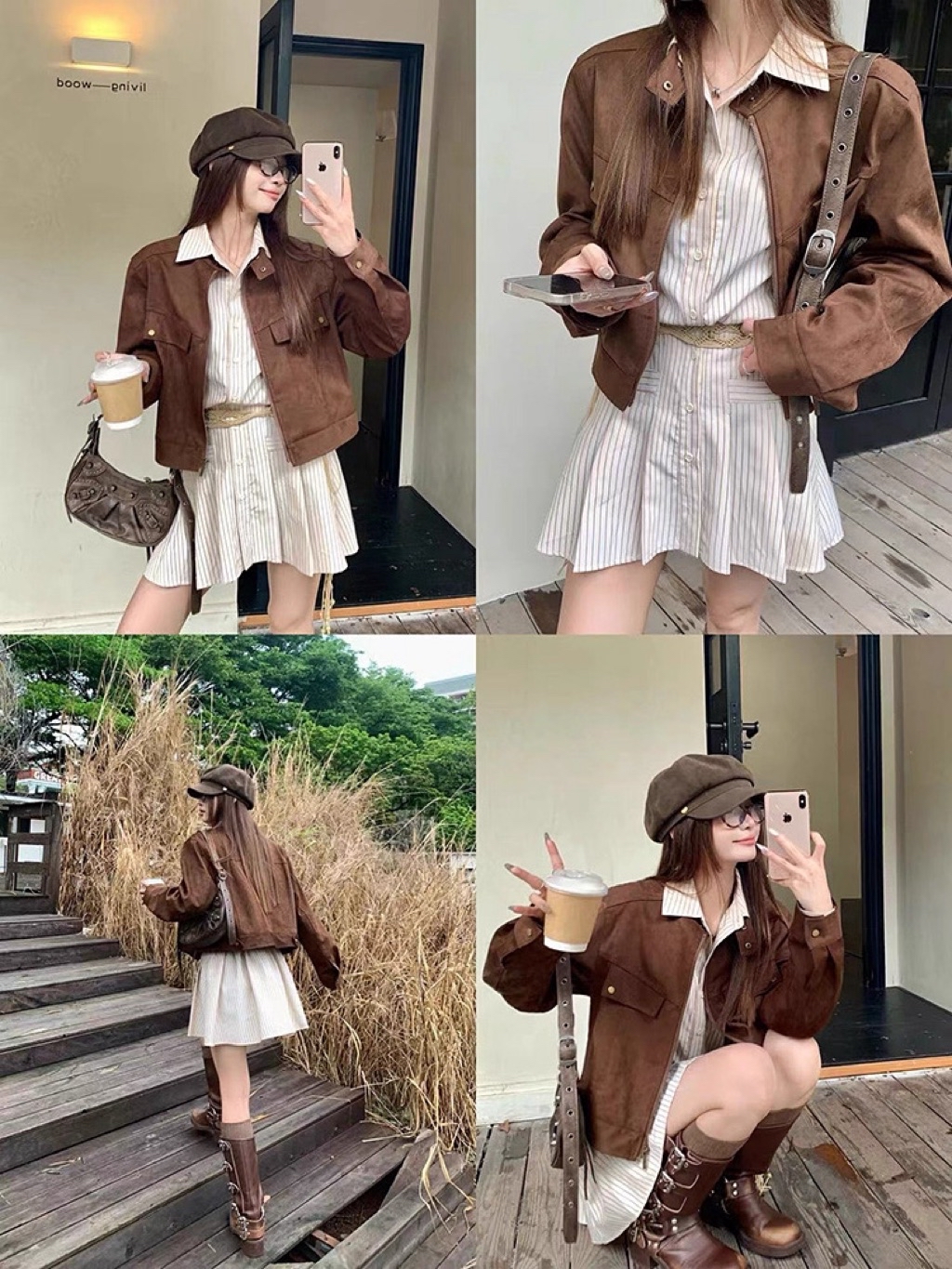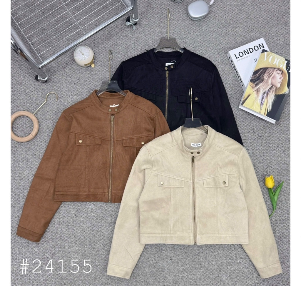 [Hàng QC L1] Áo khoác da lộn cổ trụ cúc bấm dáng croptop thiết kế túi nắp đứng form