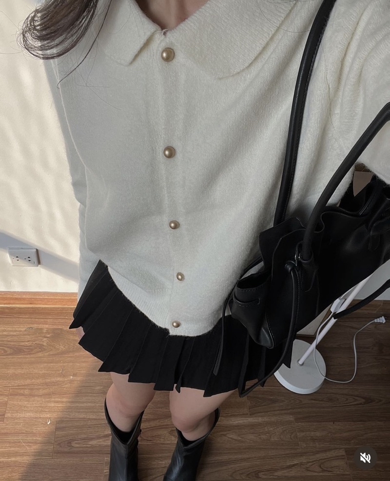 Mix với chân váy xếp ly, giày loafer cho style “preppy girl” chuẩn Hàn.