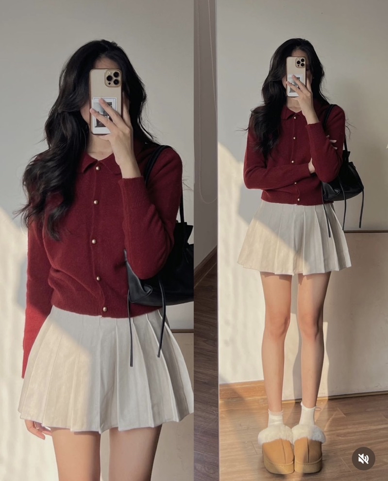 Màu sắc: Đỏ rượu, nâu xám, kem sữa – tone basic cực dễ phối đồ.