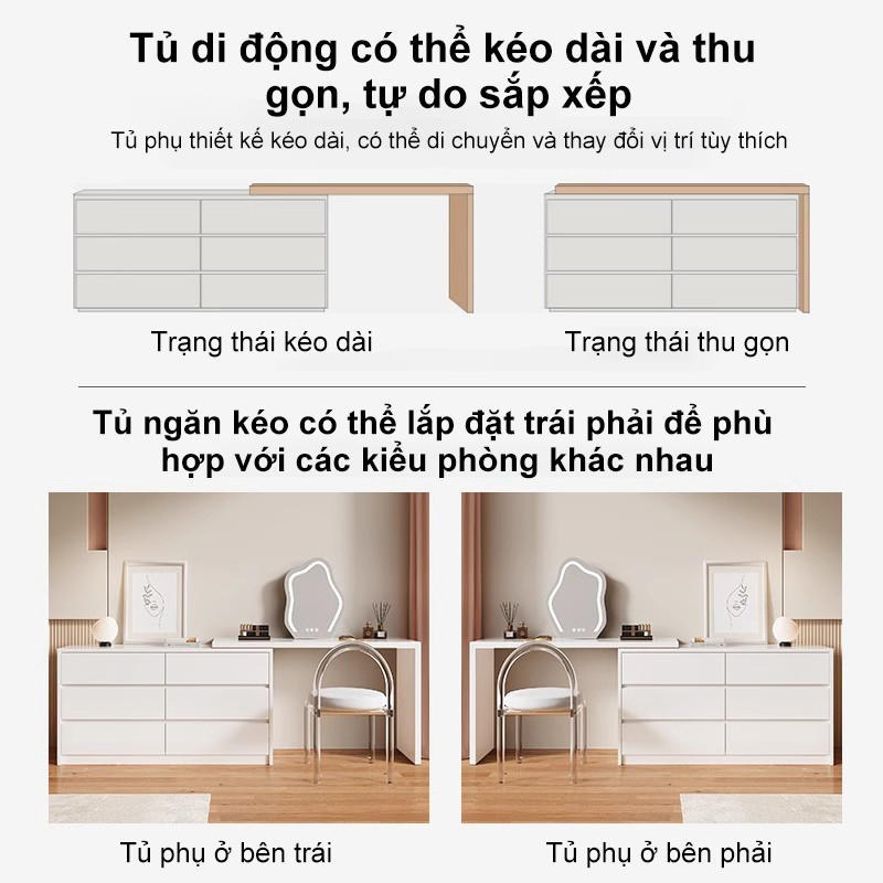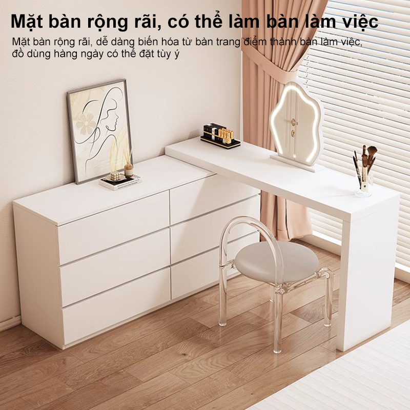 HEINO Bàn Trang Điểm 2in1 Gỗ Đen - Tủ Đầu Giường Đa Năng Thiết Kế Hiện Đại Hot Kèm 6 Ngăn Kéo