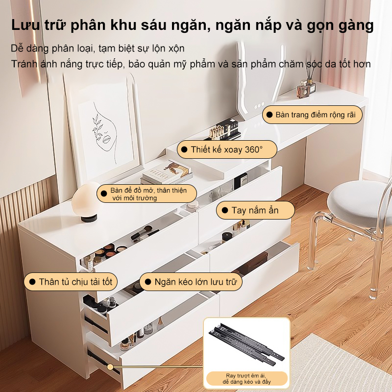 Ray dẫn hướng chất lượng cao, rất êm ái khi kéo ngăn kéo ra.