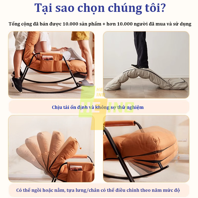 HEINO Ghế bập bênh ghế lười Nằm Thư Giãn Hiện Đại Hàng Nhập Khẩu nguyên chiếc chất liệu da dày dặn