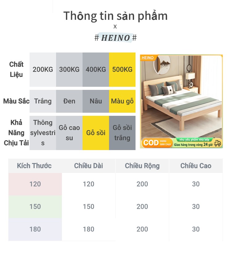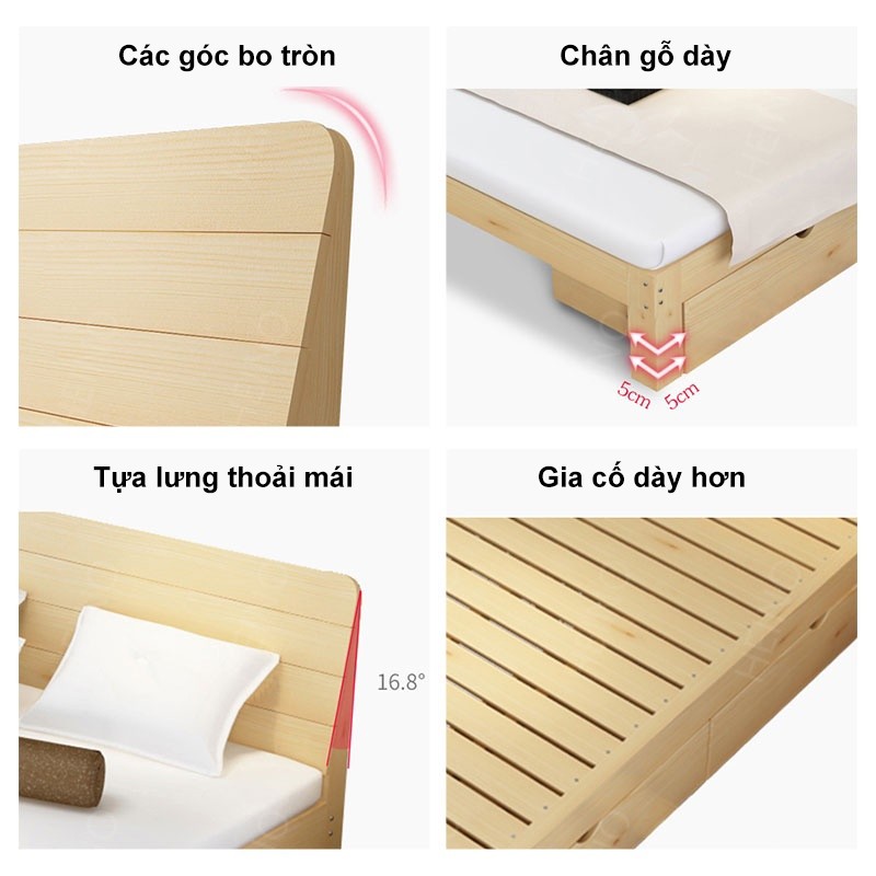 Phụ kiện : Vạt giường 17ly cực kỳ cứng cáp, chịu lực trên 300kg.