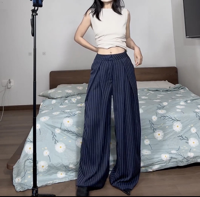 | HÌNH THẬT ĐỘC QUYỀN CUBEDLEMON | Quần ống siêu rộng ulzzang ly lệch phần lưng sọc