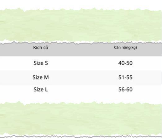 Size: Theo bảng size (Chất co giãn tốt, ôm vừa vặn cơ thể).