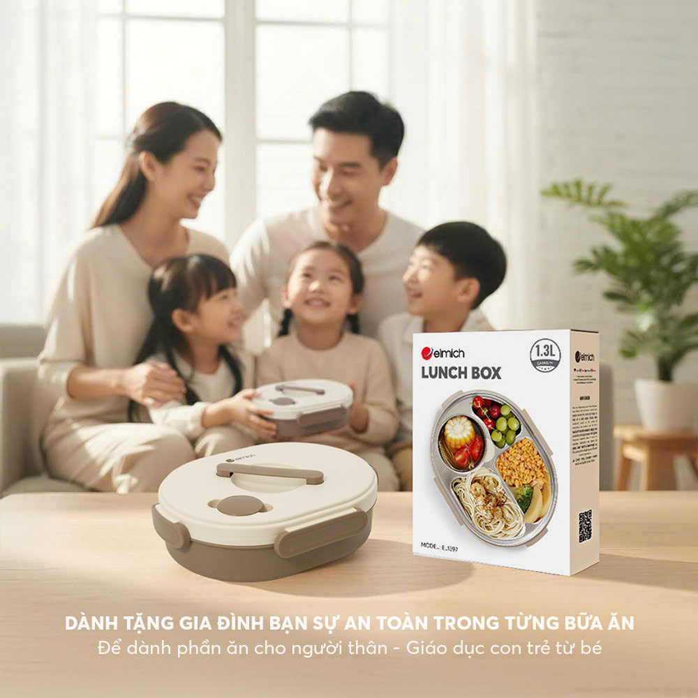 Hộp cơm inox 304 Elmich EL-1397 không chỉ đơn giản là dụng cụ đựng thức ăn mà còn có thể trở thành người bạn đồng hành trong việc giáo dục con trẻ. Với dung tích chia suất hợp lý, bố mẹ dễ dàng chuẩn bị bữa ăn cân đối cho con, giúp trẻ hình thành thói quen ăn uống khoa học.
