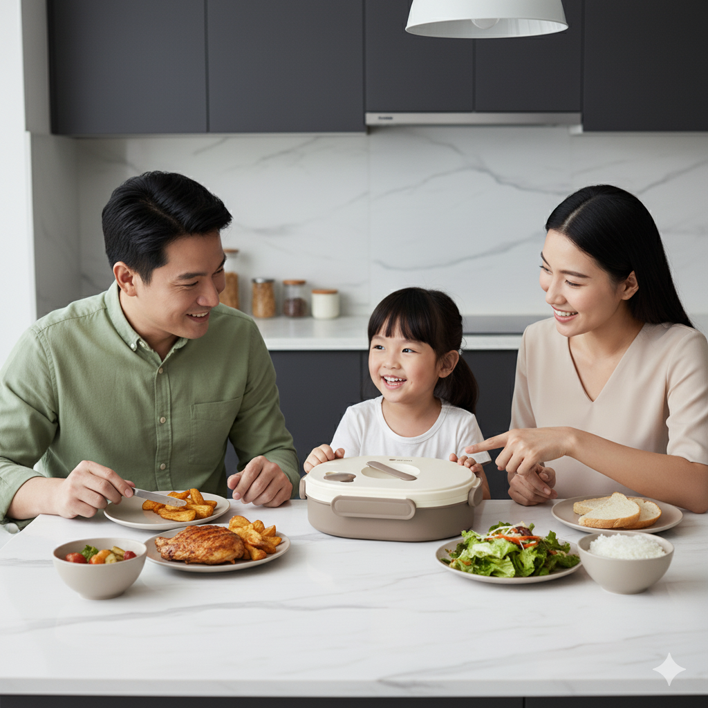 Thiết kế gọn gàng, dễ mở và dễ vệ sinh khuyến khích trẻ tự lập hơn trong việc sắp xếp, dọn dẹp sau khi ăn. Từ đó, chiếc hộp cơm nhỏ bé này góp phần nuôi dưỡng tính ngăn nắp, chủ động và ý thức trách nhiệm của trẻ ngay từ những hành động đơn giản mỗi ngày.