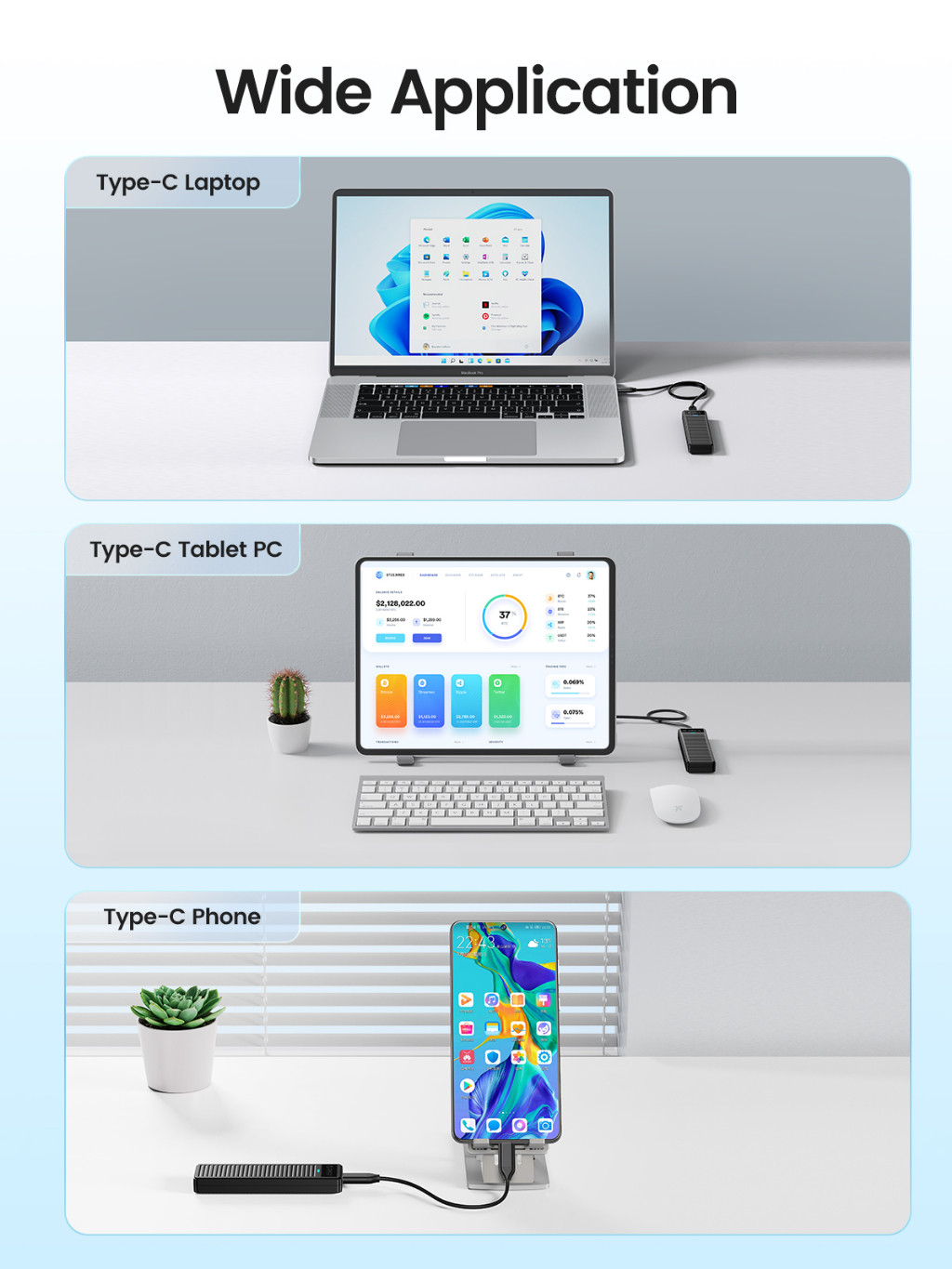 Sản phẩm này có thể tương thích với kích thước ổ cứng thể rắn M.2 (2230, 2242, 2260, 2280), không còn lo lắng về việc SSD của bạn có thể được cài đặt trong các sản phẩm của chúng tôi hay không. Đồng thời, nó không yêu cầu bất kỳ công cụ nào để cài đặt. Mở khay trượt và lắp SSD của bạn vào đó chỉ bằng một thao tác ấn nhẹ.