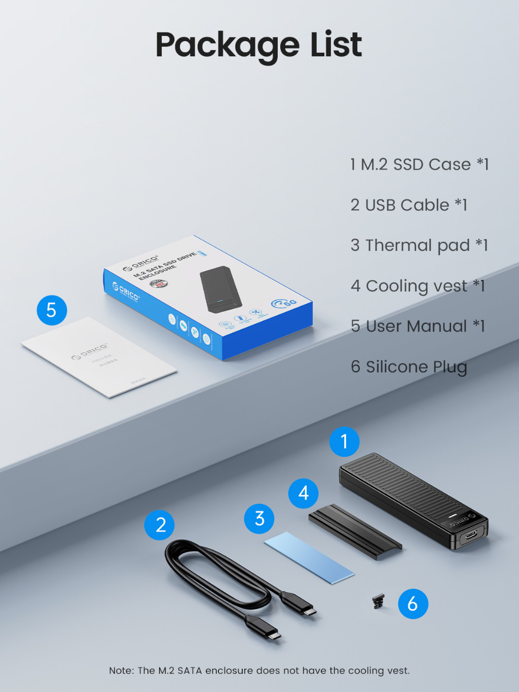 Hỗ trợ SSD M Key (Giao thức NVME) / M & B Key (cả NVME và SATA Protocol), không tương thích với B Key SSD, với cáp Type-C to Type-C dài 30cm. Vest làm mát đi kèm.