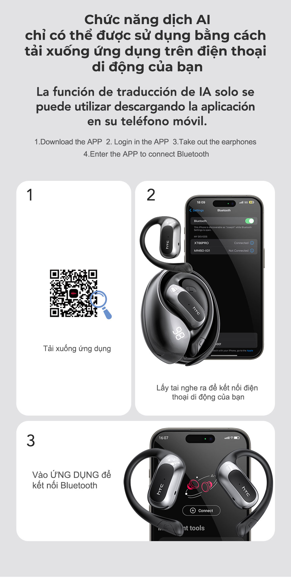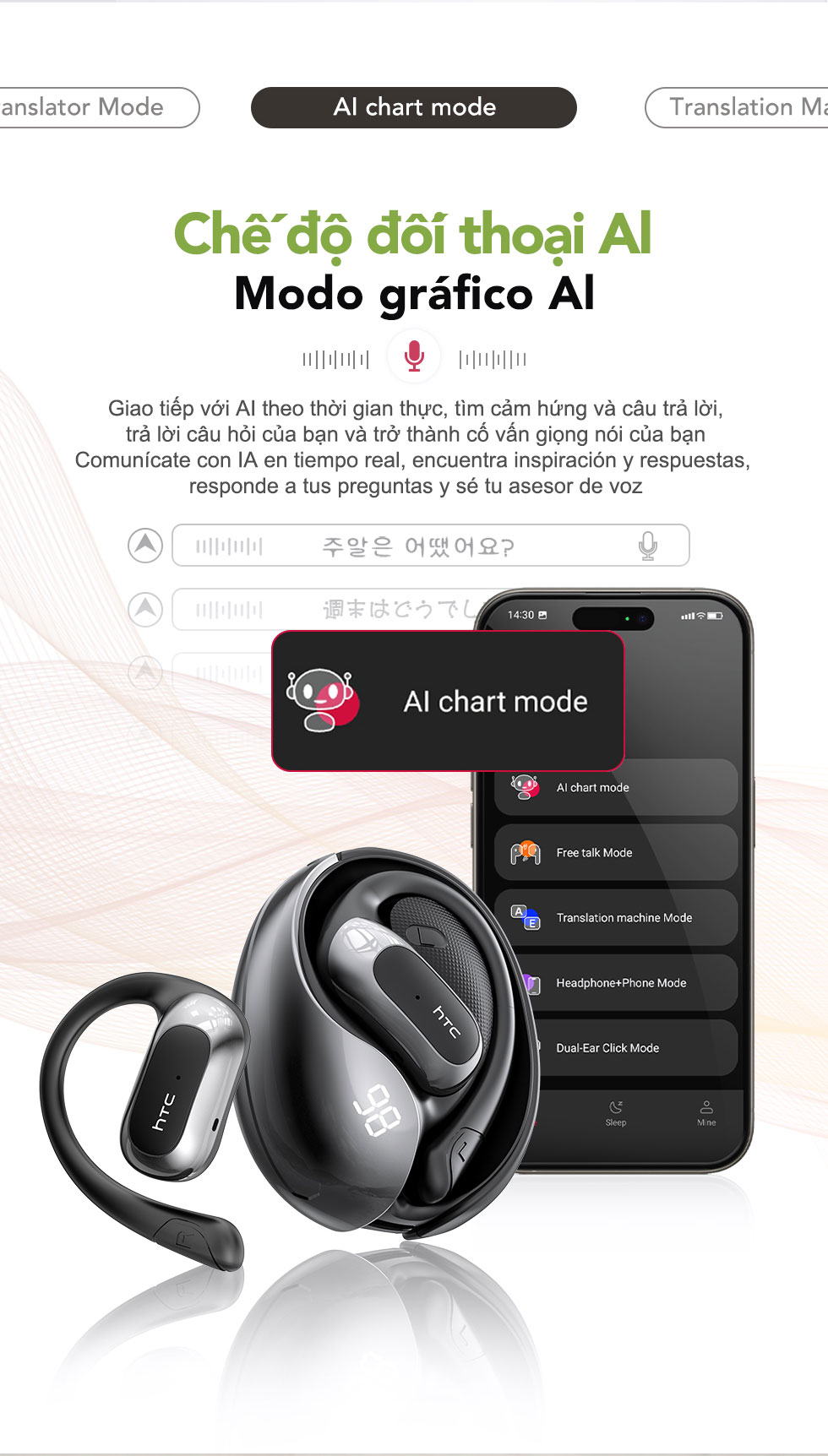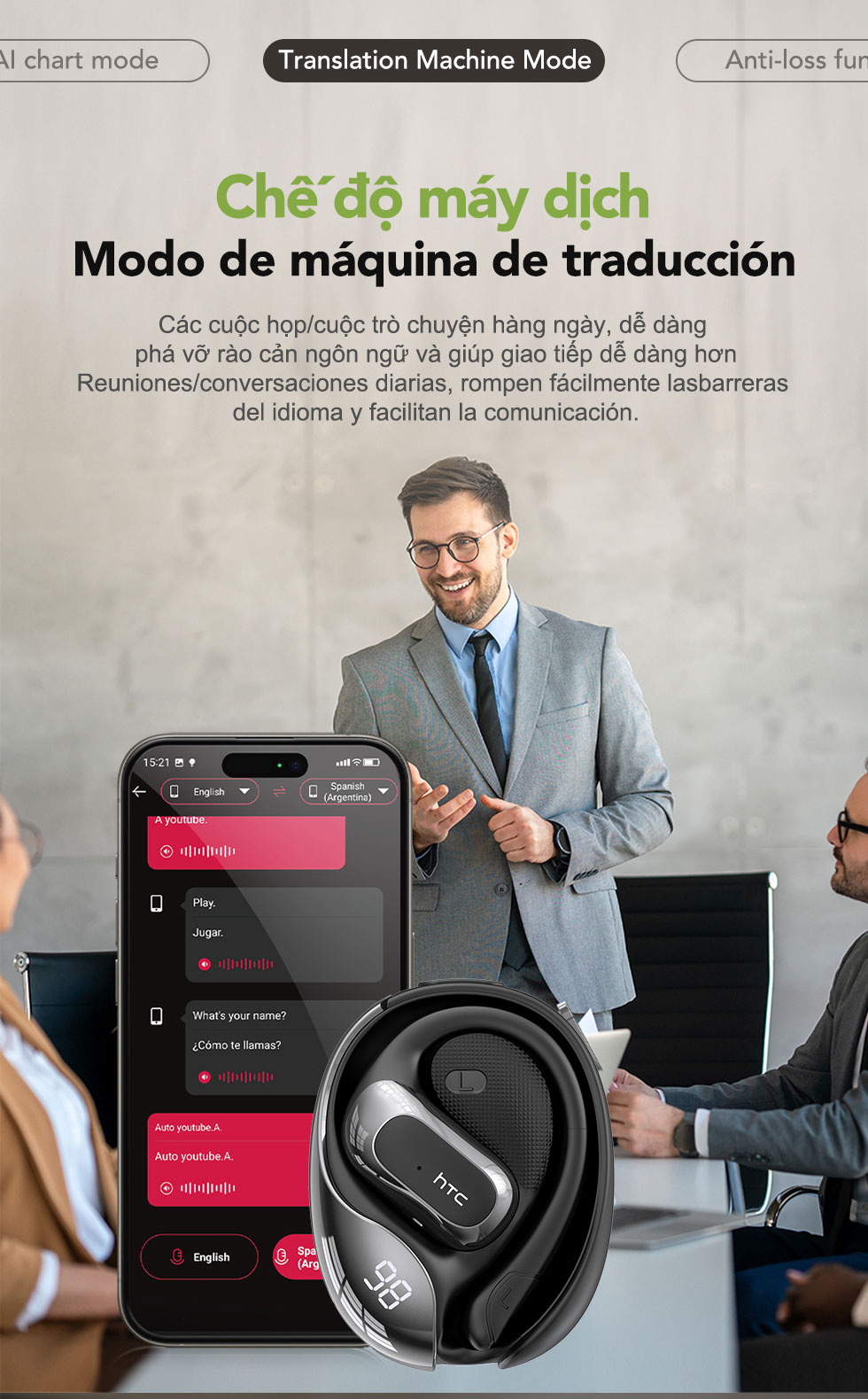 HTC NE21 Tai Nghe Phiên Dịch tai nghe bluetooth 6.0 Tai nghe không dây chất lượng HIFI tuyệt vời với micrô Màn hình kỹ thuật số LED