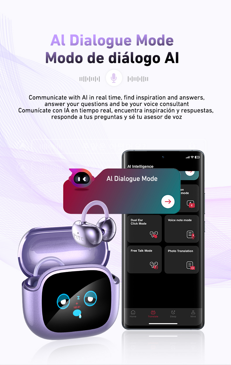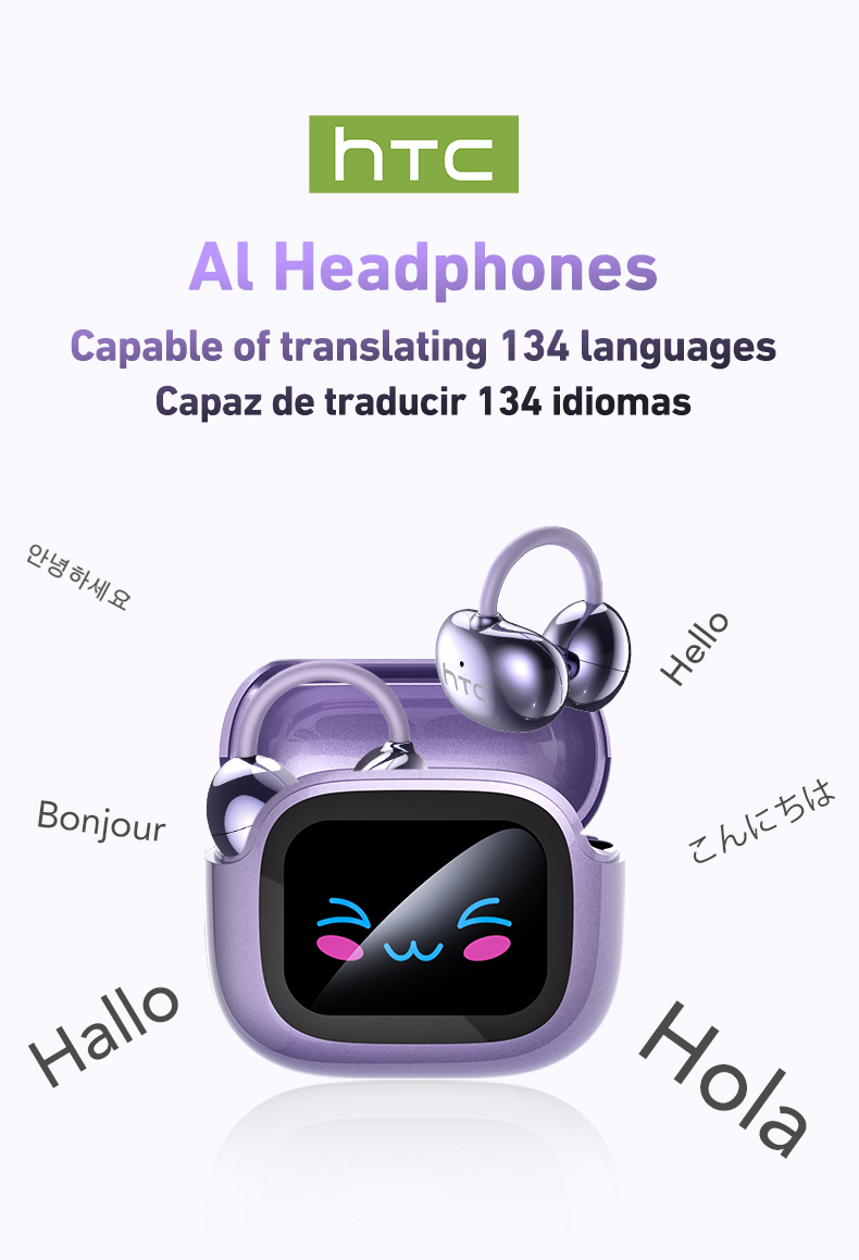 HTC NE32 Tai nghe dịch thuật AI Tai nghe Bluetooth 6.0 Dịch thuật AI Màn hình LED thông minh Chất lượng âm thanh HiFi Công nghệ giảm tiếng ồn