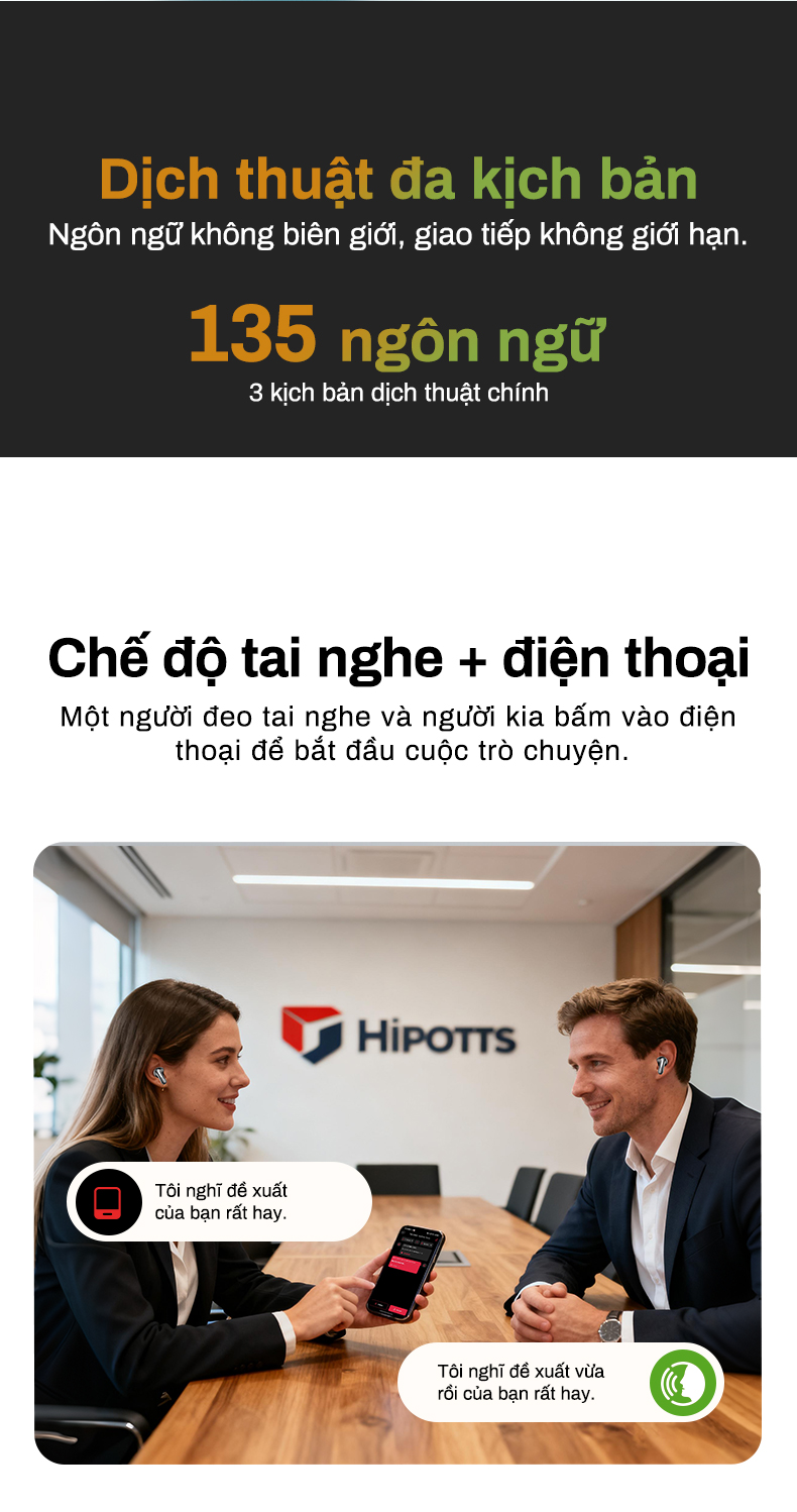 Công nghệ phiên dịch song ngữ đồng thời, cho phép giao tiếp xuyên biên giới trôi chảy và tự nhiên như sử dụng ngôn ngữ mẹ đẻ.