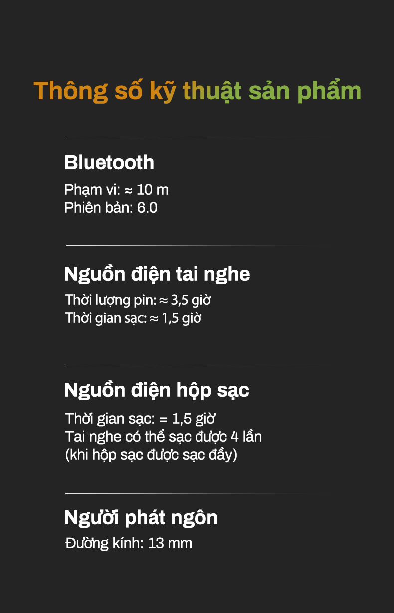 Khi được sạc đầy, hộp sạc có thể sạc lại tai nghe khoảng 4 lần.