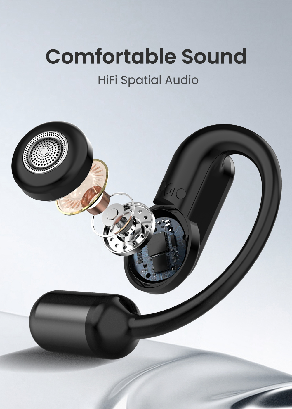 Âm thanh không gian HiFi:** Thiết kế hở lưng thoải mái mang đến hiệu ứng âm thanh phong phú, nhiều lớp, cho phép bạn thưởng thức âm nhạc, podcast và phương tiện truyền thông đồng thời lắng nghe âm thanh xung quanh.