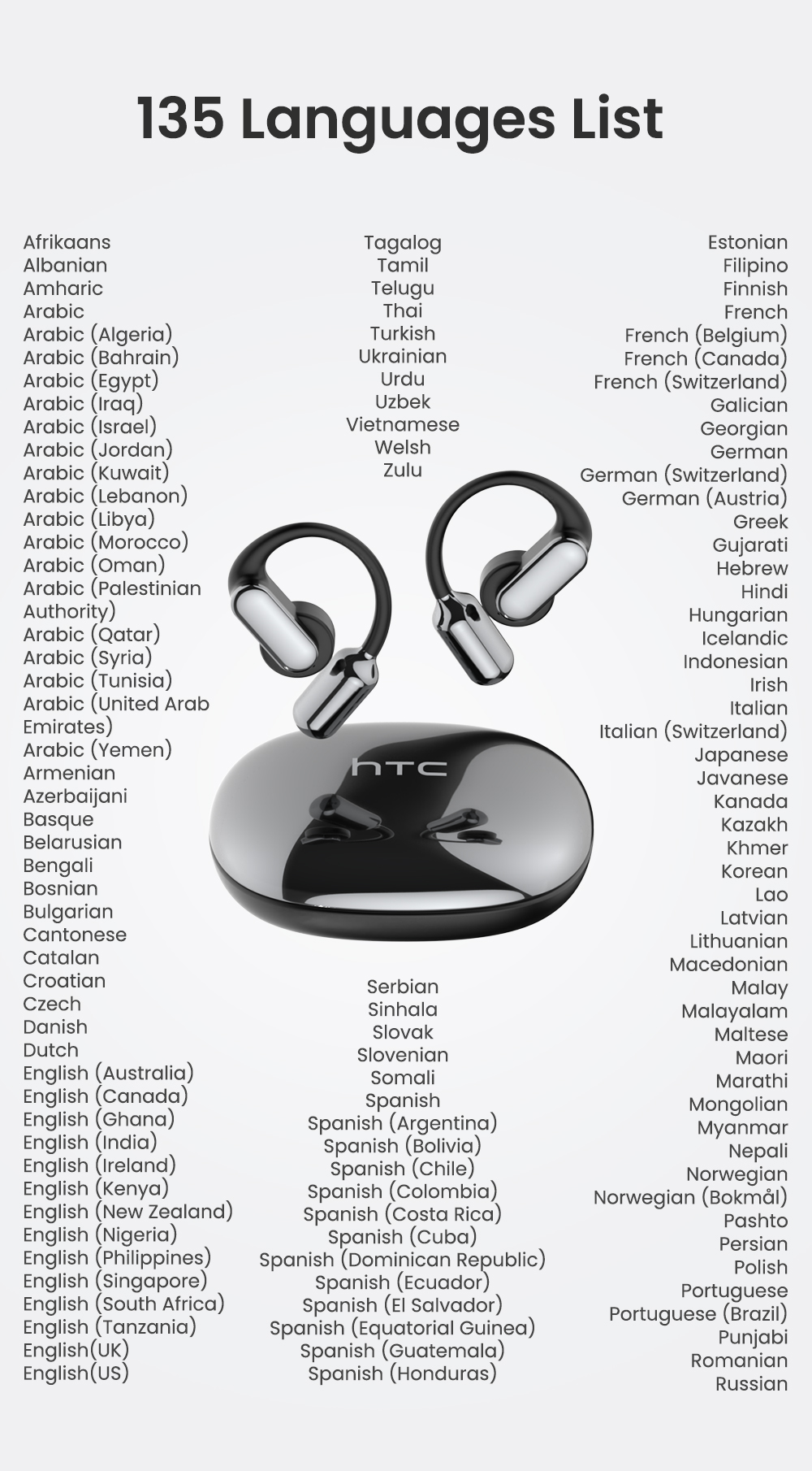HTC NE50 Tai nghe dịch thuật AI Bluetooth 6.0 4 pin thay thế Thời lượng pin dài Điều khiển cảm ứng Cuộc gọi thoại HD Có micro