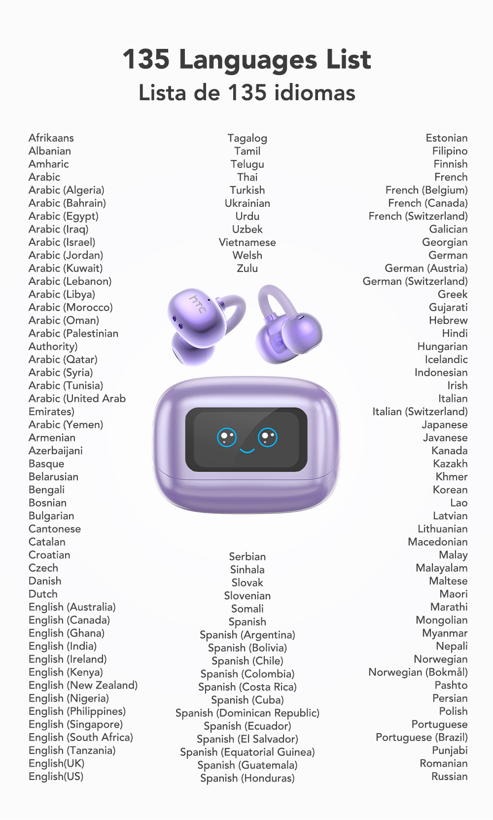 Bao gồm các ngôn ngữ chính thống trên thế giới, giao tiếp xuyên biên giới/du lịch quốc tế không bị cản trở