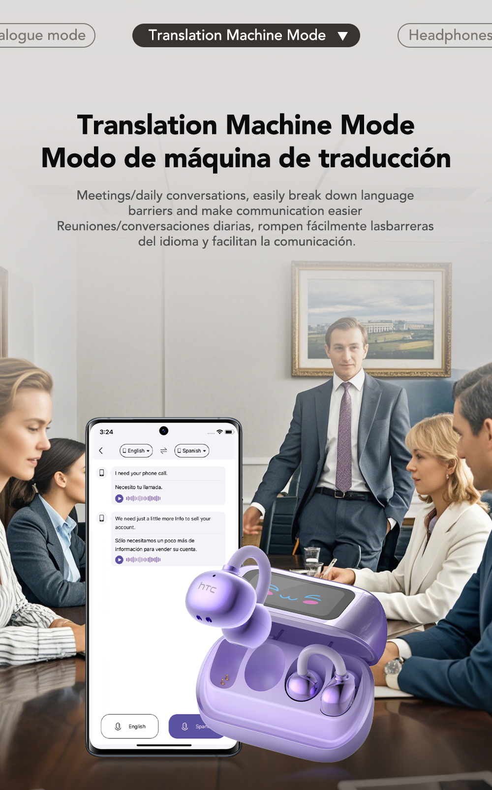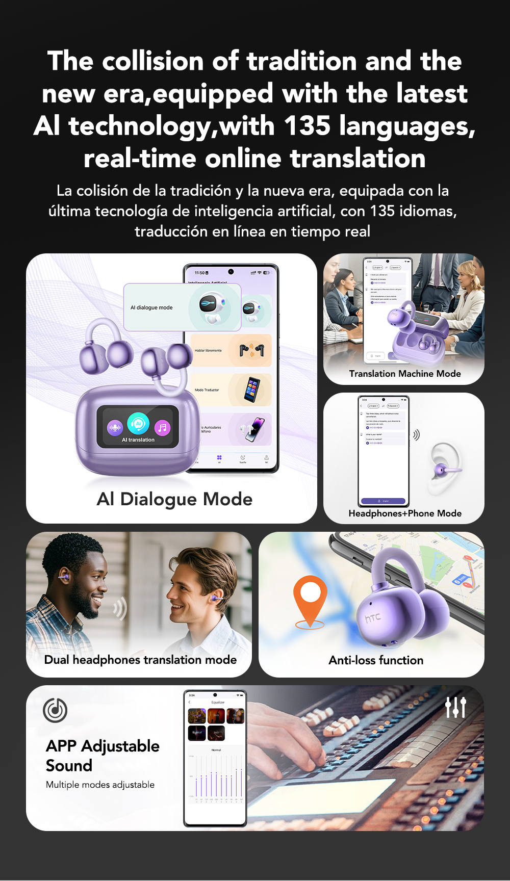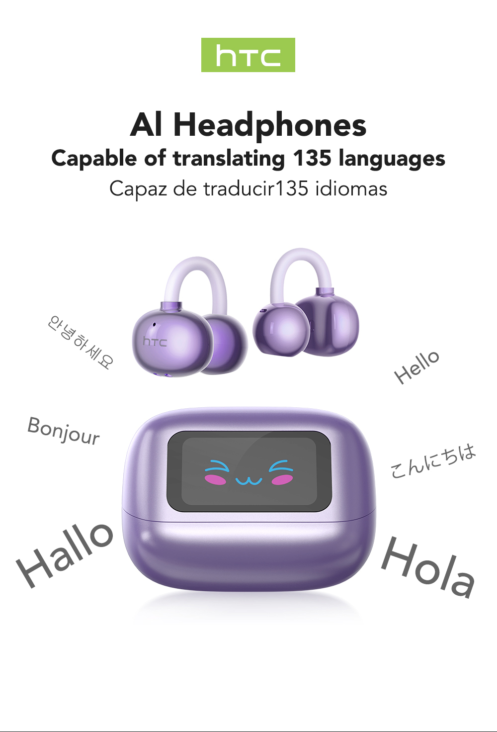 HTC NE54 AI Tai Nghe Dịch Thuật Bluetooth 6.0 Khử Ồn Thông Minh HIFI Thiết Kế Tai Nghe Dẫn Truyền Xương Chống Nước IPX5 Màn Hình Cảm Ứng LED